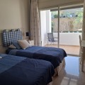 - This ample 3 bedroom townhouse is situated frontline golf, and offers open and spectacular views of the golf course, the mountains surrounding the valley, and with the touch of the Mediterranean Sea on the horizon. This property combines elegance, spaciousness, and a privileged location in one of the most desirable Golf enclaves on the Costa del Sol. Ideal as a permanent residence, vacation home, or real estate investment. Has a unique location as it is a corner property with a great layout in 2 floors and a large garden to enjoy all day all year round. With high quality integrated design features throughout. Includes private garage with direct access to the house • Ready to move in. • Spacious living room with fireplace and two large windows that open into a covered terrace and a corner garden. • Ample and fully equipped kitchen with access to the patio-laundry room, all electrical appliances included. With option to become open plan concept if desired. • 3 large bedrooms with fitted wardrobes and access to different terraces. Master bedroom with dressing room and bathroom en suite. • 3 full bathrooms, with top quality marble tiles, main bathroom with underfloor heating, huge shower and Jacuzzi with Golf and sea views. • 3 terraces with different orientations, main terrace with possibility to install glass curtains, offering an ideal space to enjoy at any time of day and year. • Hot / cold air conditioning and fireplace • Private garage and storage area • Alarm system, video intercom and electric shutters in all rooms including living room and kitchen • Furniture included Acquire this property and obtain a privilege card with special offers in all the Resort facilities, 3 X 18-hole golf courses, golf academy, tennis, squash, gym, restaurants, Spa and high-quality beauty salon, house club… and much more.