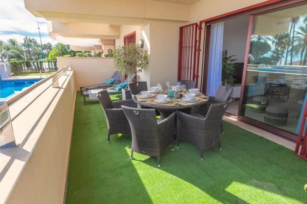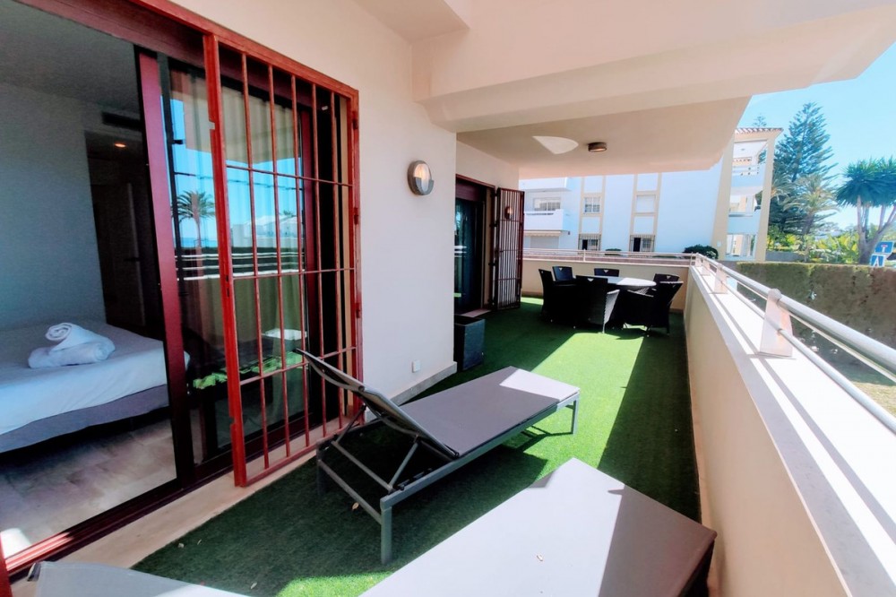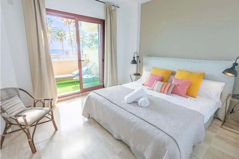 - Discover this spectacular apartment with incredible sea views, located in an exclusive gated community in San Pedro. With three large bedrooms, and two bathrooms, one of them en suite, this property is perfect for enjoying the coast and views of Africa and Gibraltar. With outstanding restaurants within walking distance and the Boulevard nearby with pharmacies and schools, this place offers comfort and convenience. In addition, it has a garage and storage room. With 183 m² built, a very large terrace for barbecues, south facing, central heating and air conditioning. This home is a unique opportunity. Don't miss the opportunity to live in this amazing beachfront apartment! And also, they accept pets! Contact us now for more information!