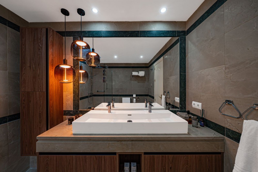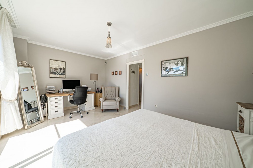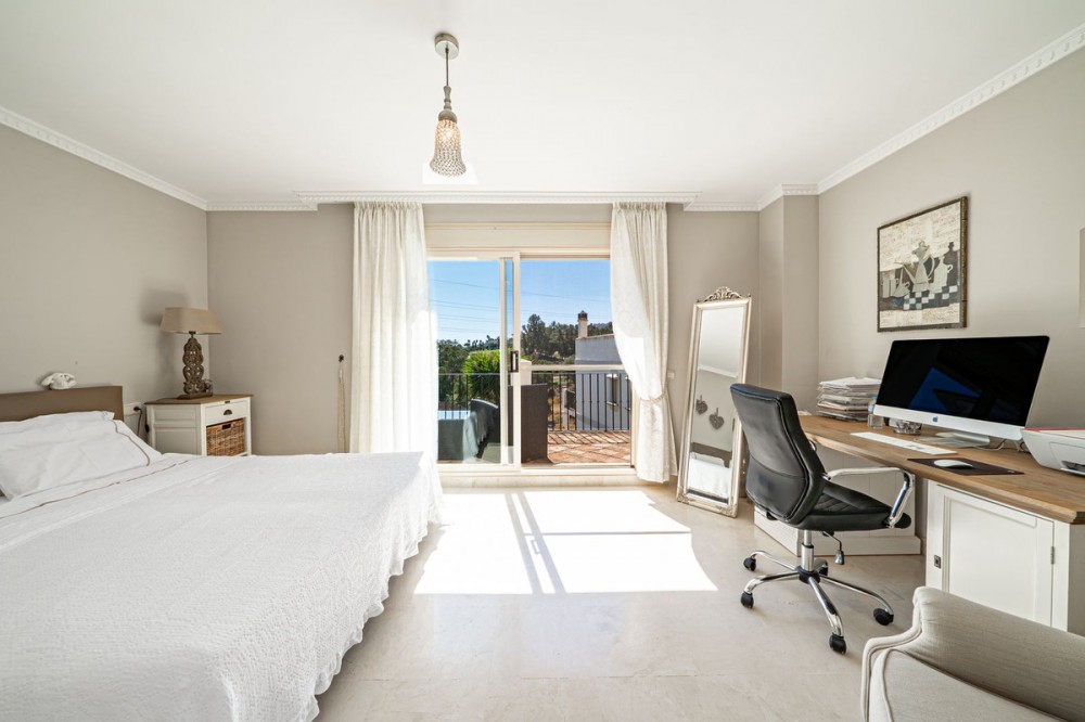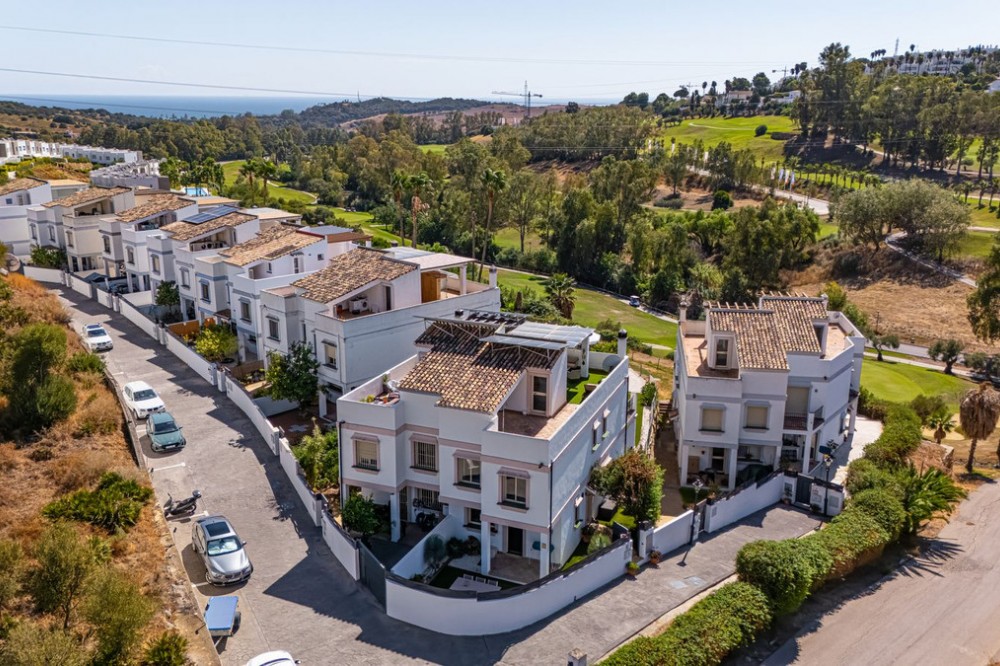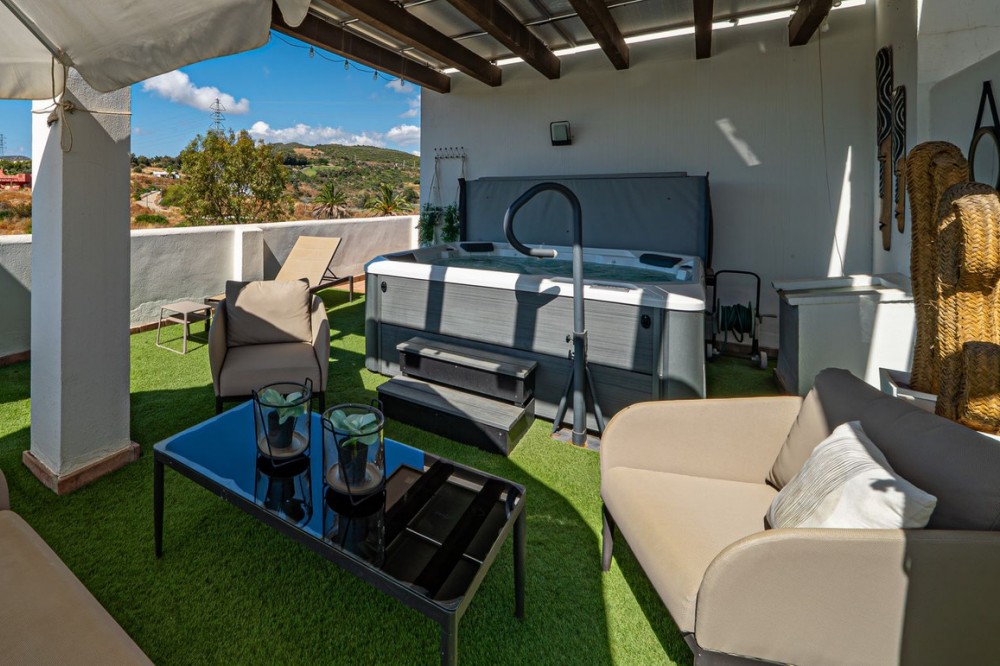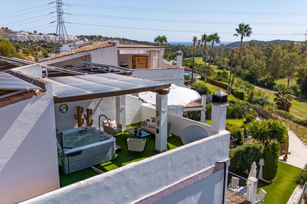 - Spacious Frontline Golf Semi-Detached House with Luxury Upgrades – Panoramic Views | Jacuzzi | Solar Energy Welcome to your dream home in Estepona Golf – a modern, spacious, and energy-efficient semi-detached house in a private, peaceful community of just 16 homes. Perfectly located just 5 minutes from the beach, new Estepona Hospital, shops, schools, supermarkets, and restaurants, and only 10 minutes from Estepona Marina. Just 5 minutes away, the unique Alcazaba Lagoon — spanning 1.4 hectares — offers the perfect setting to relax, unwind, and enjoy crystal-clear waters in a tropical-style paradise. Lifestyle & Location Enjoy stunning panoramic views of the golf course, Mediterranean Sea, and Sierra Bermeja mountains from your sunny terraces and 67 m² rooftop solarium. Whether you’re seeking a family home, holiday retreat, or investment, this property offers the perfect blend of comfort, privacy, and Mediterranean charm. Property Features 4 bedrooms · 2 bathrooms · 2 guest toilets Bright, spacious living room with access to a private south-facing garden – ideal for al fresco dining Brand-new kitchen with Siemens appliances Renovated bathrooms, new air-conditioning, and boiler Freshly painted: interior (2024) & exterior (2022) Private parking on-site Communal garden with swimming pool Extras You’ll Love Large rooftop terrace with a brand-new 6-person Jacuzzi & open golf views Designer garden with top end artificial grass, plants, and irrigation system 12 solar panels covering all electricity consumption – excellent energy savings High-speed fiber internet – perfect for remote work Alarm system with cameras & mosquito screens on all windows and doors Underfloor Heating in the bathrooms Marble floors and stairs Semi - Basement level with 60 m² of flexible space – ideal for a playroom, gym, or extra bedroom This home offers a unique combination of space, style, and sustainability, making it a standout opportunity in Estepona Golf. Move in and start enjoying a relaxed, luxury lifestyle surrounded by nature, golf, and the Mediterranean coast.