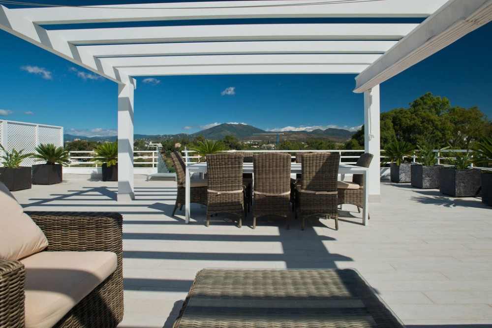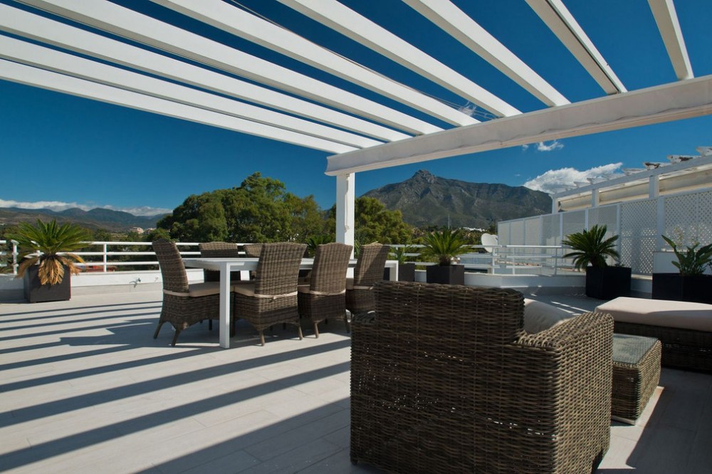 - Frontline Beach Penthouse – Playa Esmeralda, Marbella Golden Mile 3 Bedrooms | Rooftop Solarium with Jacuzzi | Panoramic Sea Views An extraordinary opportunity to own a luxury beachfront penthouse in the prestigious Playa Esmeralda residence, located on Marbella’s iconic Golden Mile. This exclusive property offers uninterrupted views of the Mediterranean Sea, stretching from the Bay of Marbella to Puerto Banús and Gibraltar, all from one of the most sought-after addresses on the Costa del Sol. The penthouse features a spacious open-plan living and dining area filled with natural light, seamlessly connecting to a large south-facing terrace overlooking the sea. A separate modern kitchen is fully equipped with high-end appliances and ample storage, making it as functional as it is stylish. The home includes three generous bedrooms: a master suite with an en-suite bathroom and terrace access, and two further bedrooms that share a beautifully finished full bathroom. Throughout the home, luxurious details such as marble flooring, double-glazed windows, and central air conditioning provide both comfort and quality. One of the standout features of this property is the expansive private rooftop solarium. Designed for both relaxation and entertaining, it boasts a large jacuzzi, a shaded dining area with BBQ facilities, and multiple sunbathing zones — all with breathtaking panoramic sea views. Whether hosting guests or enjoying quiet sunsets, this rooftop space offers the ultimate outdoor living experience. Located within the secure, gated community of Playa Esmeralda, the property benefits from 24-hour security, beautifully landscaped tropical gardens, and a large communal swimming pool. Direct access to the beach and Marbella’s famous seaside promenade allows for effortless coastal walks to either Puerto Banús or Marbella town, passing by the iconic Marbella Club and Puente Romano resorts along the way. This penthouse also includes an underground parking space and a private storage room, adding further convenience and value. Situated close to world-class restaurants, designer boutiques, beach clubs, golf courses, and top international schools, the location is second to none. Rarely does a frontline beach penthouse of this calibre become available on the Golden Mile. Whether you’re looking for a luxurious permanent residence, a prestigious holiday home, or a secure long-term investment, this is a property that delivers on all fronts. Contact us today to arrange a private viewing.