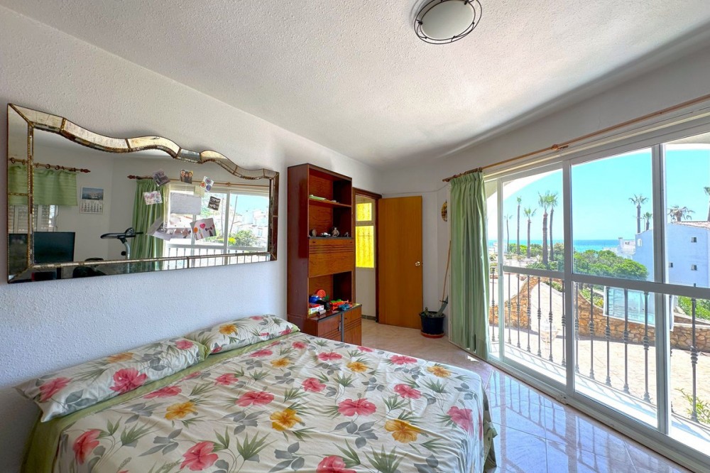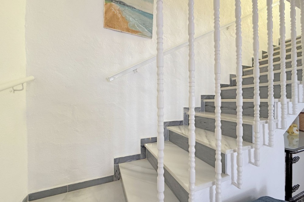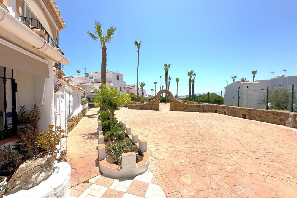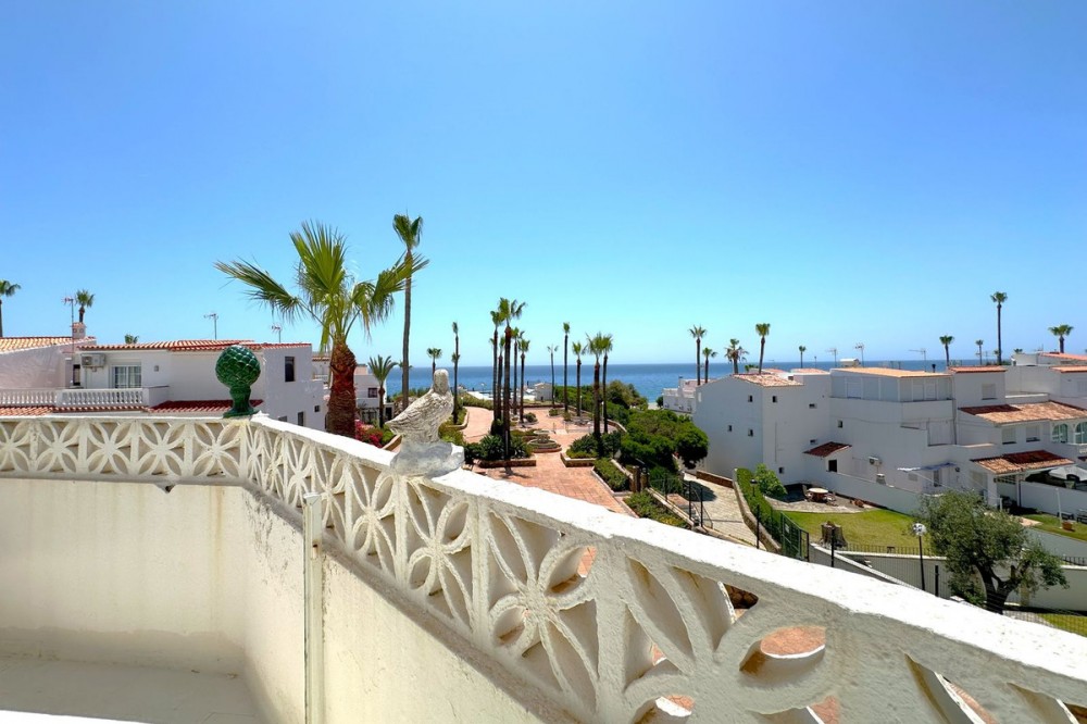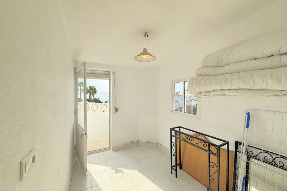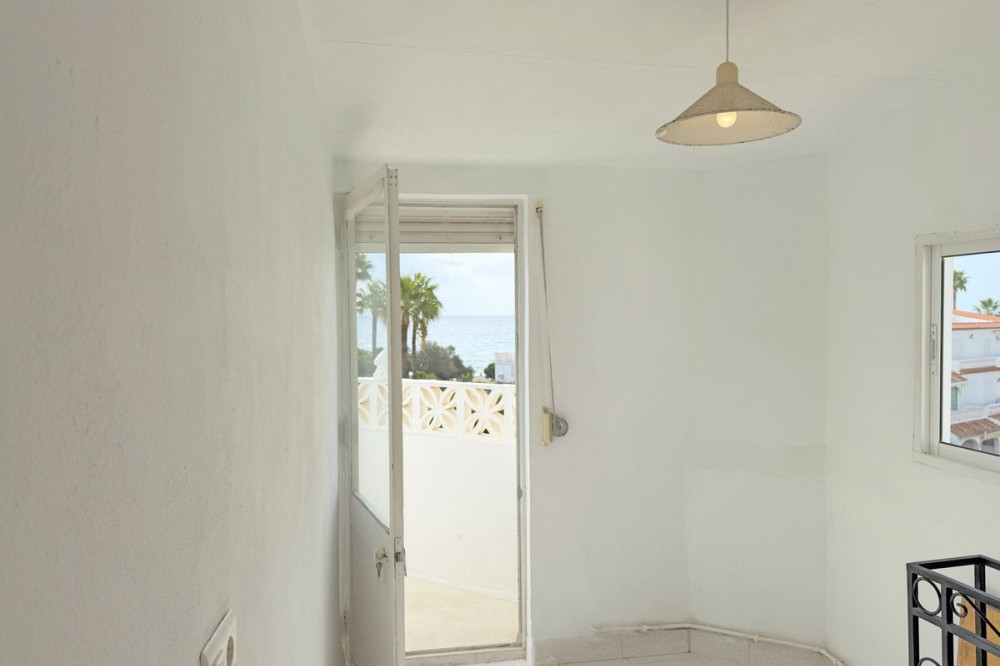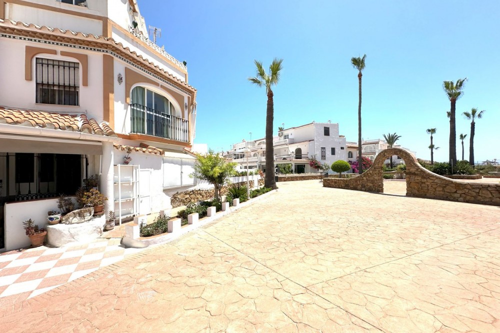 - FANTASTIC CORNER TOWNHOUSE BY THE SEA – MANILVA COSTA Located in an exclusive and peaceful beachfront development, this charming corner townhouse offers a privileged setting right by the sea. The community is pleasant and well-maintained, featuring beautiful landscaped gardens and a large communal swimming pool facing the sea, perfect for enjoying the Costa del Sol’s wonderful climate. Direct access to the seaside promenade allows easy connection to the nearby beach bars and the picturesque marina of La Duquesa, where you will find excellent restaurants and a lively leisure atmosphere, all just a short walk from the property. The house is distributed over three floors and offers 4 bedrooms and 2 bathrooms, as well as a cozy terrace with beautiful sea views – ideal for watching sunsets and relaxing by the sea. Its south-facing orientation provides natural brightness throughout the day, creating a warm and comfortable atmosphere. The townhouse is currently habitable but would benefit from renovation, offering a great opportunity to customize it to your taste. There is free outdoor parking just outside the development. Overall, this is a magnificent opportunity both for year-round living and for enjoying unforgettable seaside holidays. Viewing is highly recommended.
