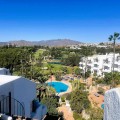 - Beautiful frontline golf penthouse with solarium and holiday rental license – Mijas Golf Located in an exclusive resort-style development, this charming penthouse offers the perfect balance of comfort, style, and natural surroundings. The community features two swimming pools and beautifully maintained gardens. The property offers 2 bedrooms, 2 bathrooms, a bright living-dining room with direct access to the terrace and a private solarium, ideal for enjoying the sun and the views. The kitchen is separate and fully equipped. It is sold furnished and ready to move in. Recently renovated, the penthouse is in very good condition, offering a fresh and modern atmosphere. Its location next to the golf course makes it ideal both as a permanent residence and as a holiday rental investment. Don’t miss this opportunity to live or invest in one of the most peaceful and attractive areas of the Costa del Sol.