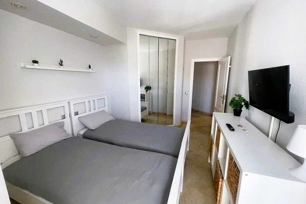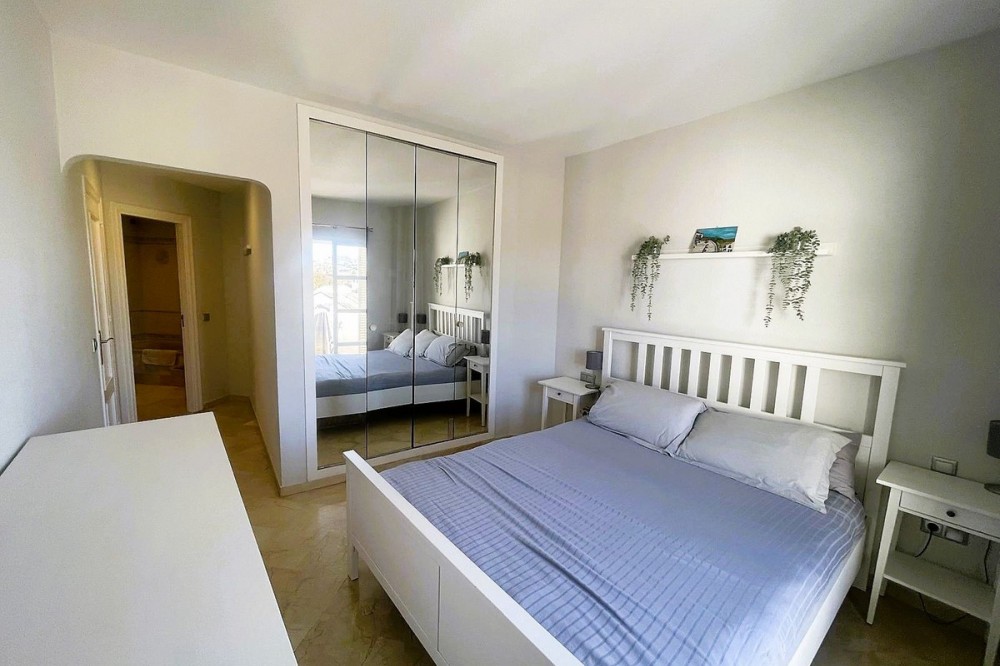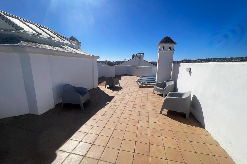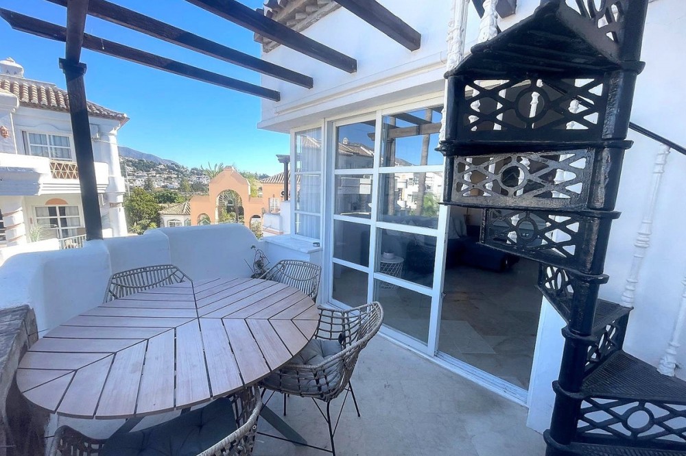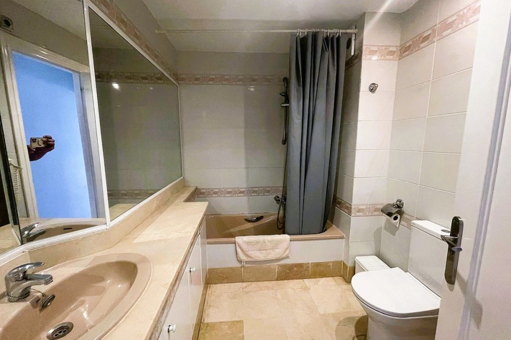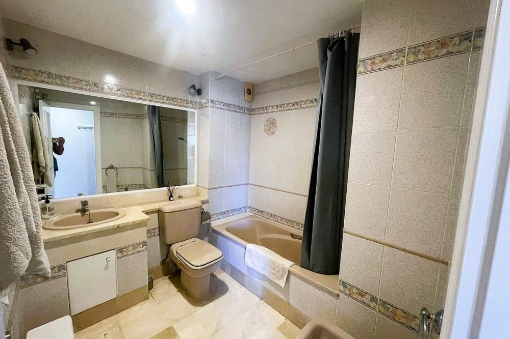 - Beautiful frontline golf penthouse with solarium and holiday rental license – Mijas Golf Located in an exclusive resort-style development, this charming penthouse offers the perfect balance of comfort, style, and natural surroundings. The community features two swimming pools and beautifully maintained gardens. The property offers 2 bedrooms, 2 bathrooms, a bright living-dining room with direct access to the terrace and a private solarium, ideal for enjoying the sun and the views. The kitchen is separate and fully equipped. It is sold furnished and ready to move in. Recently renovated, the penthouse is in very good condition, offering a fresh and modern atmosphere. Its location next to the golf course makes it ideal both as a permanent residence and as a holiday rental investment. Don’t miss this opportunity to live or invest in one of the most peaceful and attractive areas of the Costa del Sol.