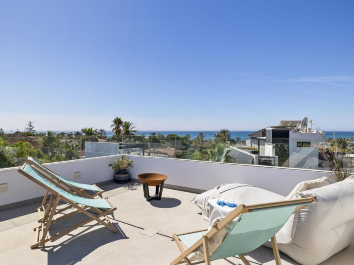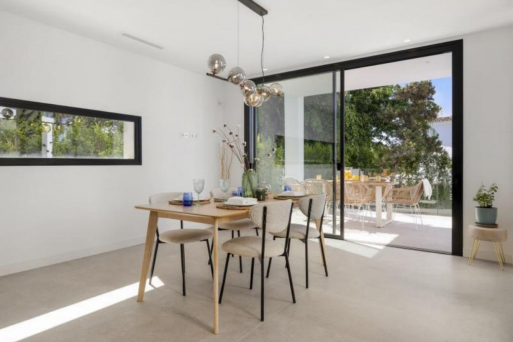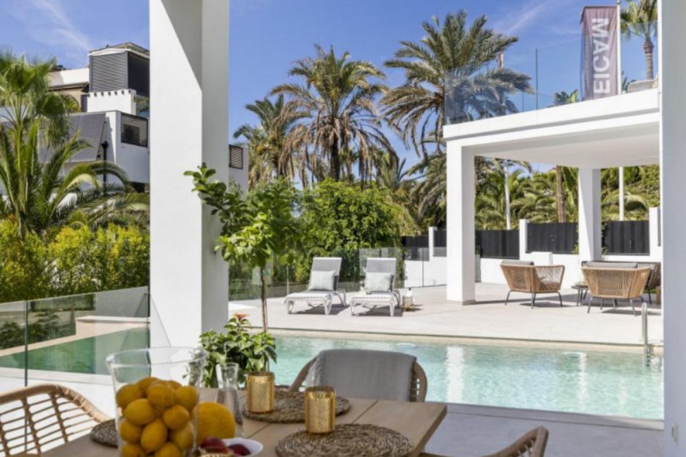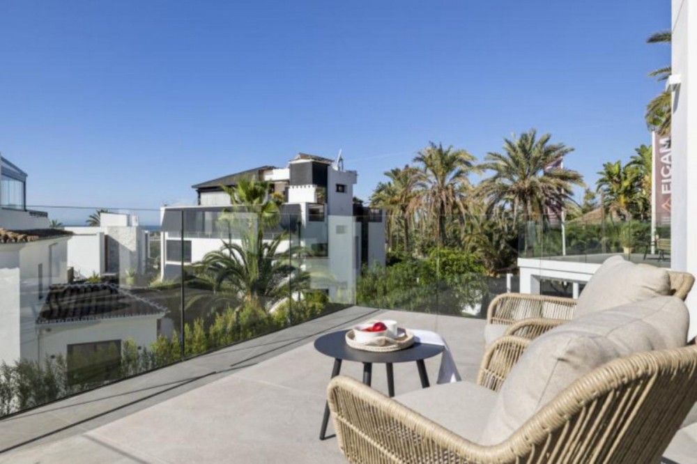 - Exceptional newly built villa located in the prestigious area of Marbesa. The property, located just a few meters from the beach and the local restaurants, features 5 double bedrooms with built-in wardrobes, 5 bathrooms, 1 guest toilet, a spacious living-dining room with a fireplace and direct access to the pool area, a fully equipped open-plan kitchen, air conditioning throughout, and tiled floors. It features an attractive private pool and is located a short walk from the beach, just a 5-minute drive from the center of Marbella, and close to all amenities.