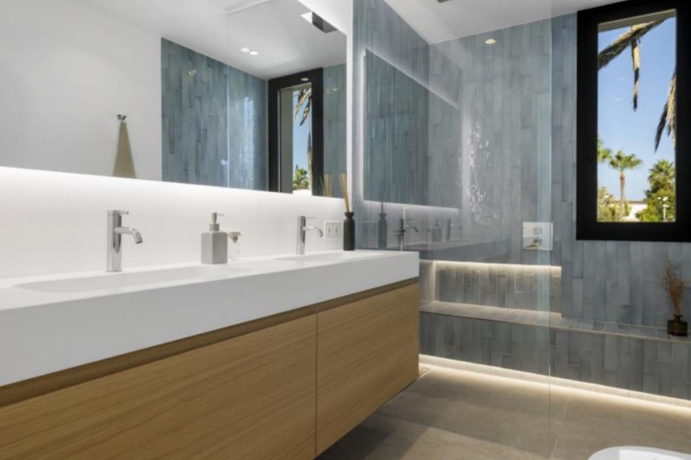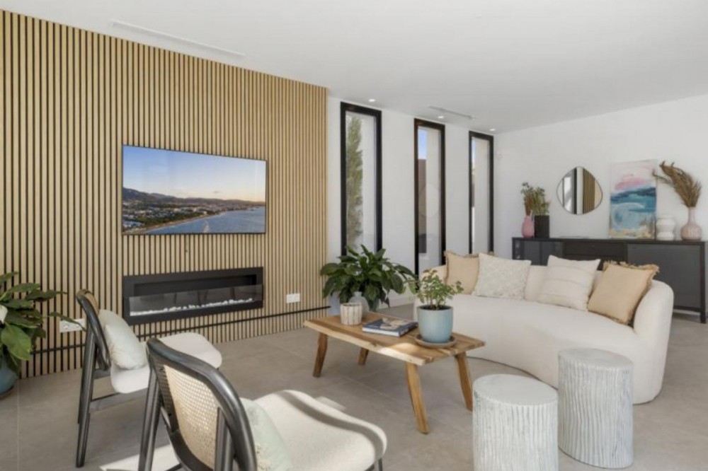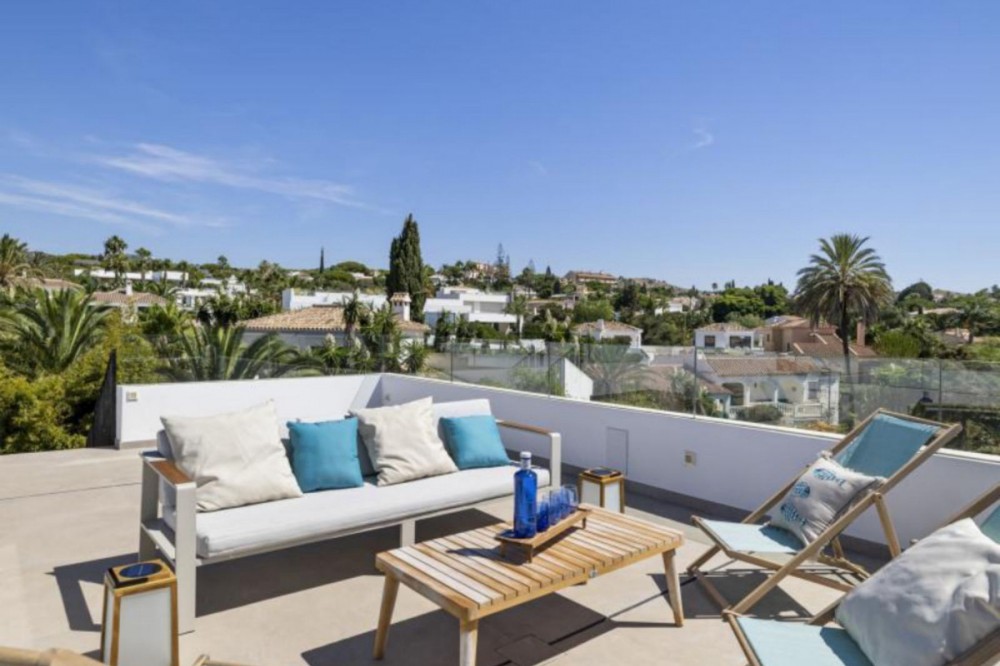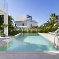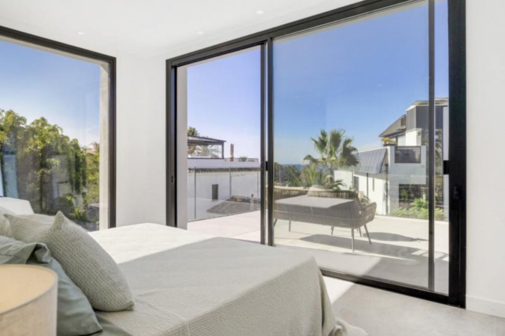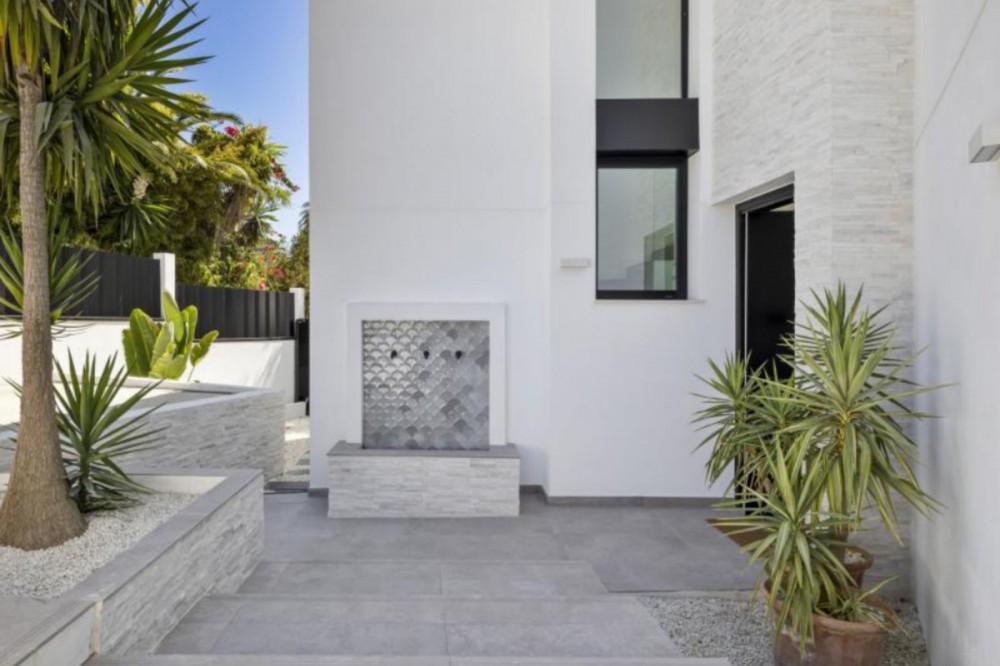- Exceptional newly built villa located in the prestigious area of Marbesa. The property, located just a few meters from the beach and the local restaurants, features 5 double bedrooms with built-in wardrobes, 5 bathrooms, 1 guest toilet, a spacious living-dining room with a fireplace and direct access to the pool area, a fully equipped open-plan kitchen, air conditioning throughout, and tiled floors. It features an attractive private pool and is located a short walk from the beach, just a 5-minute drive from the center of Marbella, and close to all amenities.