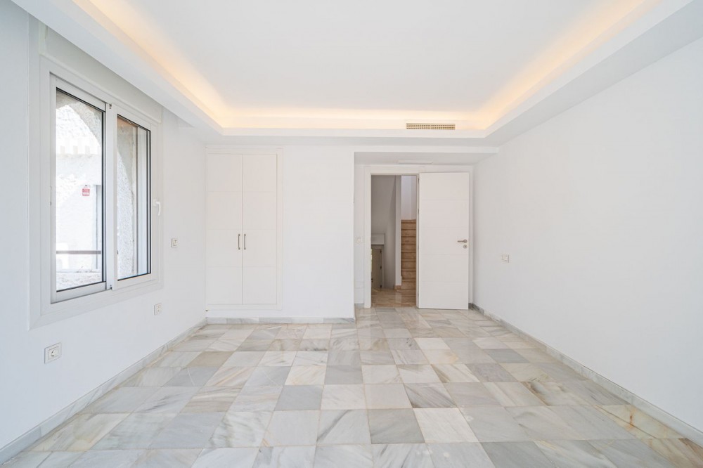 - Newly refurbished townhouse in Atalaya Rio Verde, only 5 minutes from Puerto Banus! Very spacious townhouse divided into 4 floors. On the ground floor you will find a spacious living-dining room with open terrace, a new open plan fully fitted kitchen and a large separate storage room. On the ground floor there is a spacious living-dining room with open terrace, a new fully equipped open kitchen and a large separate storage room. On each floor there is a bedroom and a complete bathroom On the upper floor there is a laundry room with access to the large solarium. There is also a large basement with bathroom and kitchen that can be used as a separate flat. The house is fully equipped with electric blinds, independent hot and cold air conditioning. Perfect family home in a private urbanisation with lush gardens and communal swimming pools. It is also an excellent rental investment as it is only a few minutes walk to Puerto Banus where the beach is located, shopping areas, restaurants, shops, hotels, schools, golf courses. At the entrance there is a flat with 1 bedroom, 1 bathroom and 1 living room and kitchen which could be rented out.