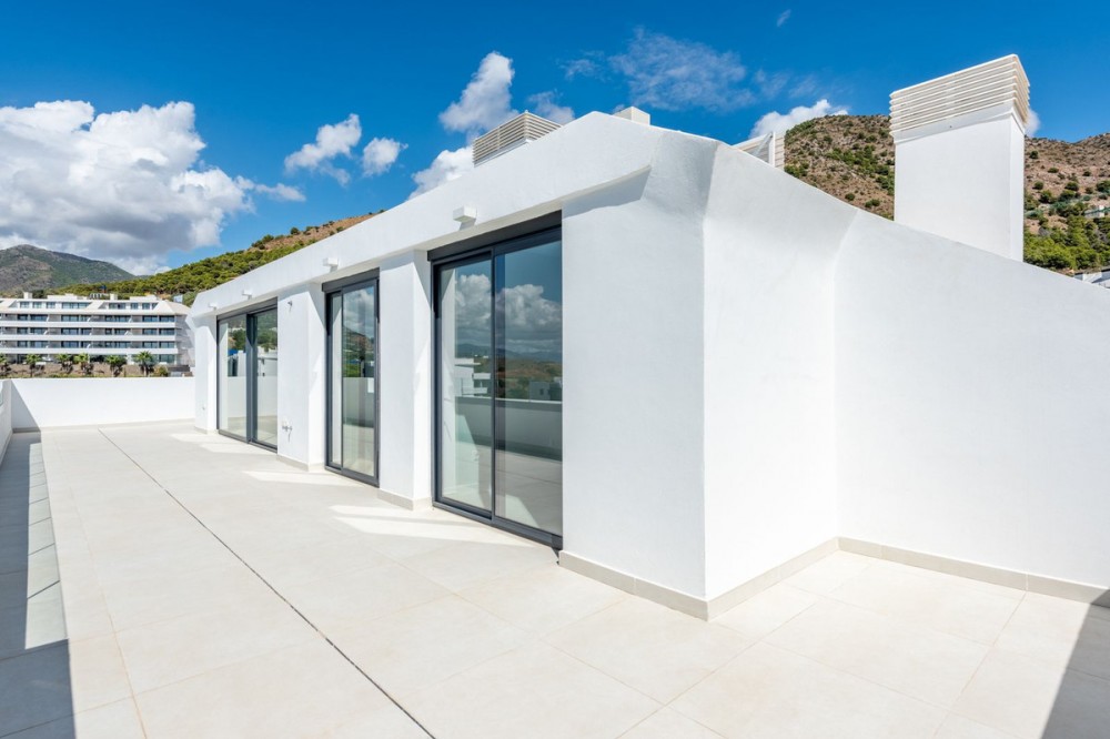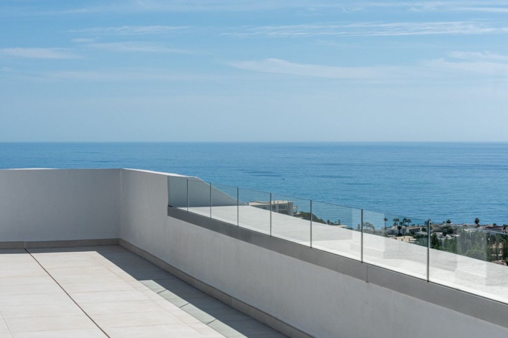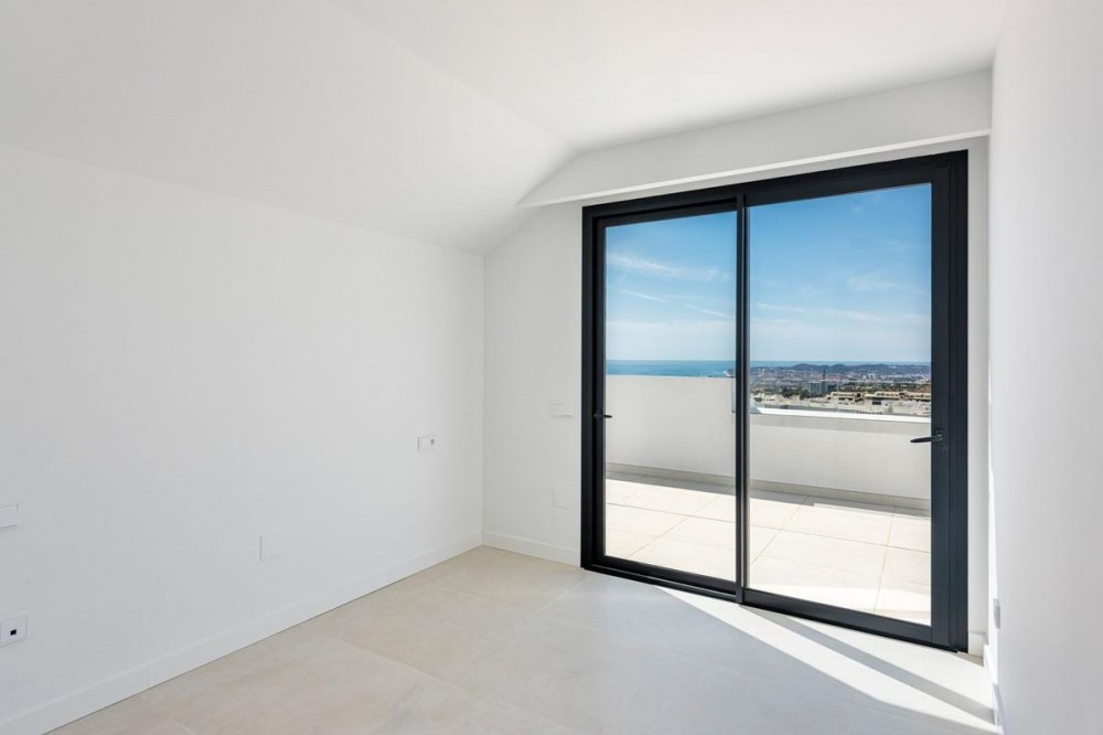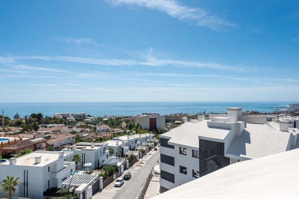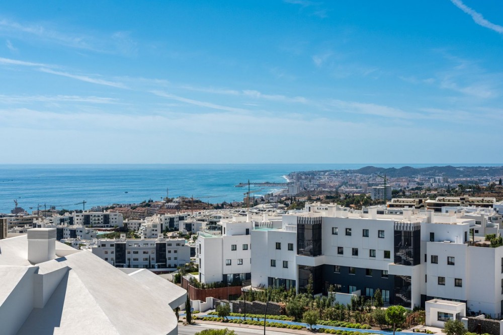 - Located in a newly developed complex, this stunning penthouse offers uninterrupted sea views from every room and direct access to a southwest-facing terrace of more than 60 sqm. From here, enjoy sweeping vistas of the coastline, Benalmádena, Fuengirola, the surrounding mountains. Arguably the best view on the Costa del Sol. The apartment benefits from private elevator access directly to the top floor, providing both comfort and exclusivity. It also includes two garage spaces and a large private storage room conveniently located next to one of them. The garage is remote-controlled and easy to access. Residents also enjoy a beautiful communal pool area with sun loungers, panoramic views, and on-site facilities. The location is unbeatable with just a 10-minute walk from the beach and train station, with direct links to Málaga city, the airport, and Fuengirola. The AP-7 is close by, making travel along the coast effortless. Higuerón also offers world-class amenities just minutes away, including hotels, restaurants, shops, gyms, co-working spaces, tennis and paddle courts, scenic walking paths, and more. Entrance: Private elevator access from the garage plus staircase entrance with built-in wardrobe. Living Room: Bright and spacious with floor-to-ceiling sliding doors leading out to the terrace and breathtaking coastal views. Kitchen: Sleek white design with island and integrated Siemens appliances. Master Bedroom: Panoramic sea views, sliding doors to the terrace, walk-in closet, and ensuite bathroom. Master Bathroom: Luxury finishes with underfloor heating, double sinks, walk-in shower, and wall-mounted fittings. Bedroom 2: Generous in size with built-in wardrobes and direct terrace access. Bathroom 2: Stylishly tiled with shower and wall-mounted toilet. Terrace: Exceptional outdoor space with sun from sunrise to sunset. Other features include hot and cold air conditioning via the latest aerothermal technology Smart home features controlled via smartphone. Security controlled gated community.
