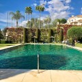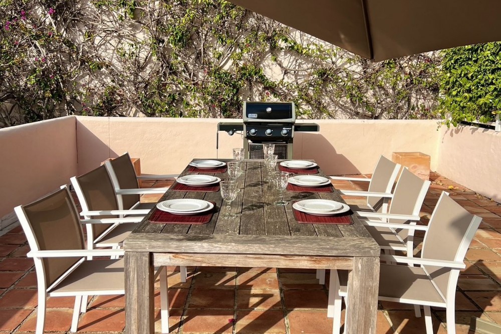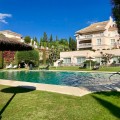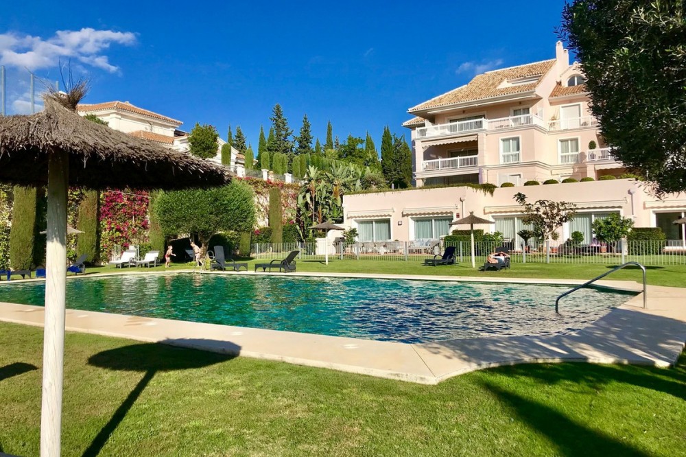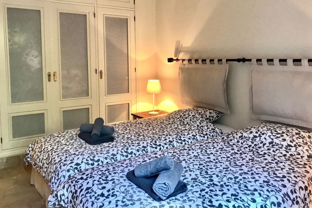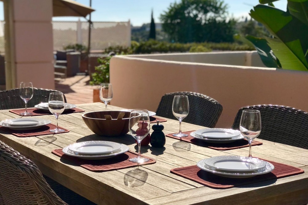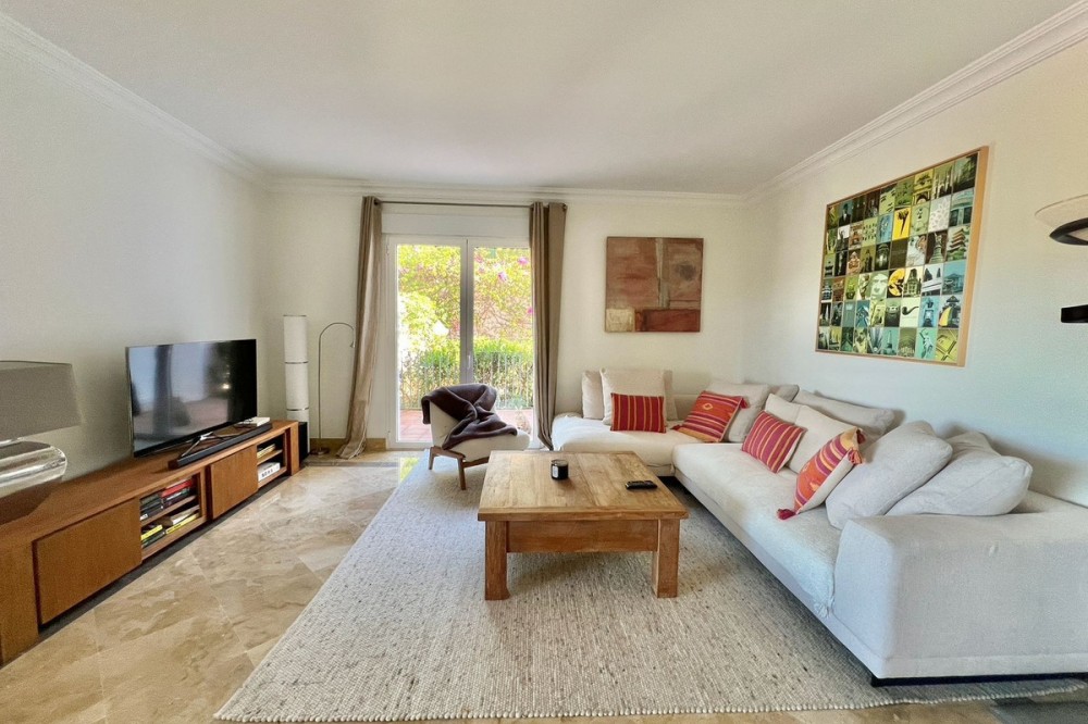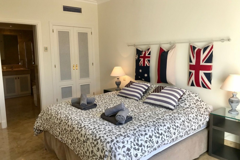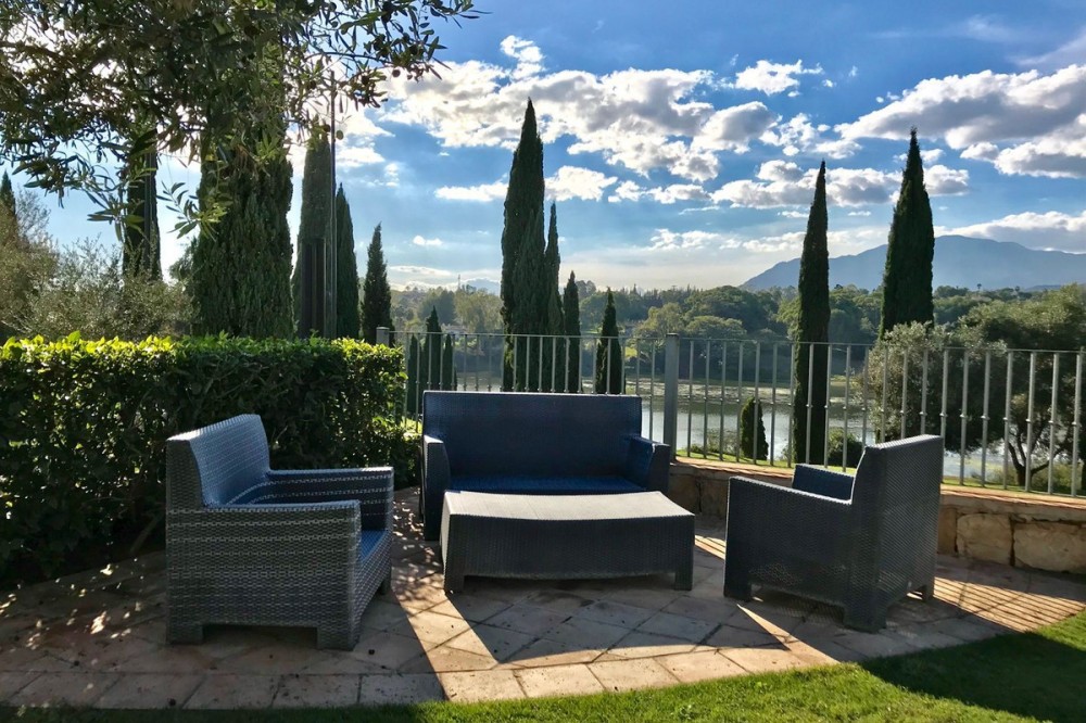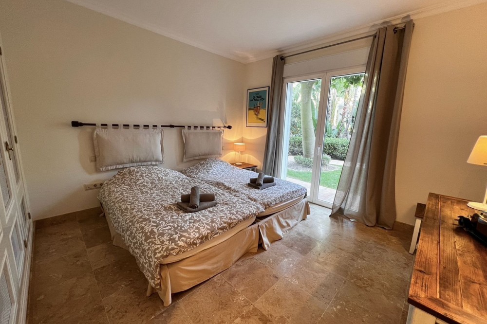 - Stunning Luxury Apartment with Panoramic Countryside Views – Frontline Golf at Los Flamingos Located in the heart of the prestigious Los Flamingos Golf Resort, this elegant 3-bedroom, 3-bathroom apartment stands out for its spacious interior, refined finishes, and spectacular open views across the countryside. A true haven of peace, nestled in a secure and beautifully landscaped setting, offering tranquillity, comfort, and exclusivity. From the moment you enter, the sense of space and natural light is immediately striking. The apartment features high ceilings, integrated air conditioning, and underfloor heating in all bathrooms, ensuring comfort throughout the year. The fully equipped kitchen includes a breakfast table and opens directly onto a charming side terrace, perfect for morning coffee or casual dining. It also connects to a separate laundry room, discreetly integrated into the layout. Additional storage space is located in the hallway for maximum practicality. Each of the three bedrooms is en-suite and has direct access to a terrace, creating a seamless indoor-outdoor flow. The master bedroom opens onto the main terrace, allowing you to enjoy the views and sunshine from the moment you wake up. One of the property’s most impressive features is the 140 m² terrace, sun-drenched all day and divided into three distinct zones: a relaxation area, an outdoor dining space, and a lounge corner for entertaining or quiet evenings under the stars. All windows are fitted with electric shutters for added security and convenience. The apartment is situated in an exclusive low-density complex, surrounded by manicured Tuscan-inspired gardens and offering access to a large turquoise communal swimming pool. With only a few units in the development, peace and discretion are guaranteed. The property is sold fully furnished, featuring high-quality materials and tasteful, timeless décor. A private spacious parking space and storage room are included in the price.