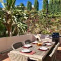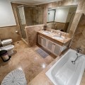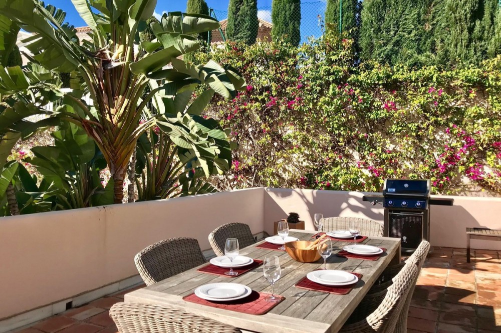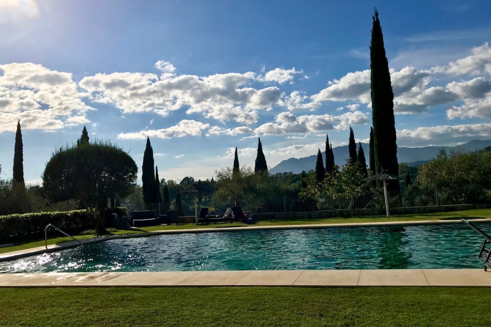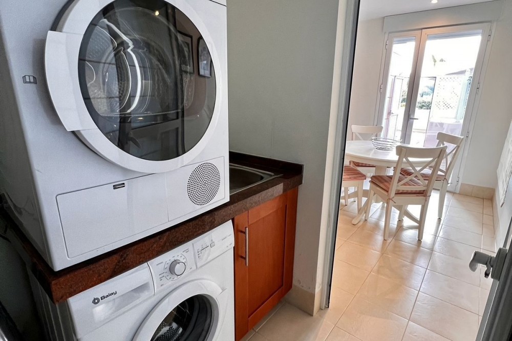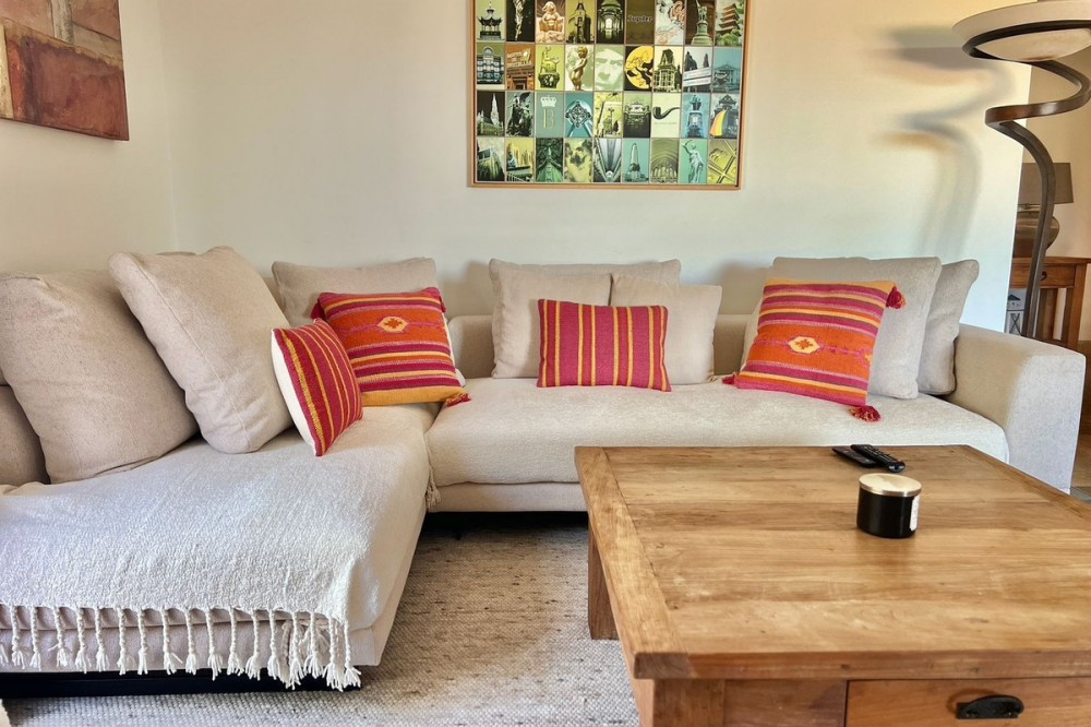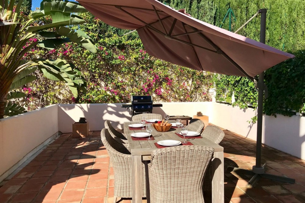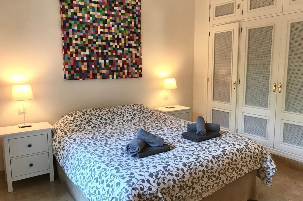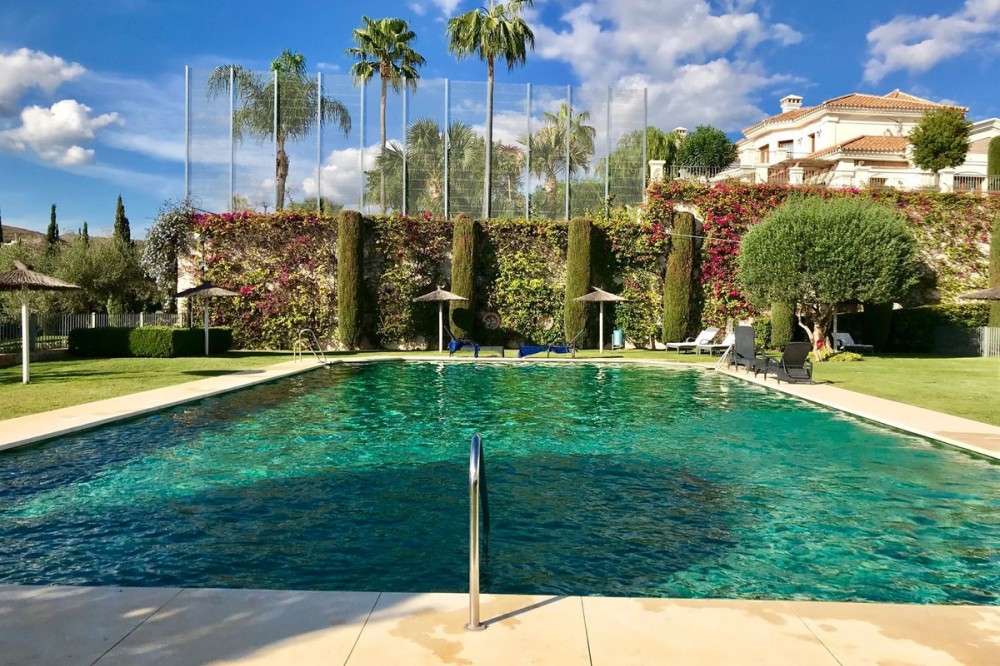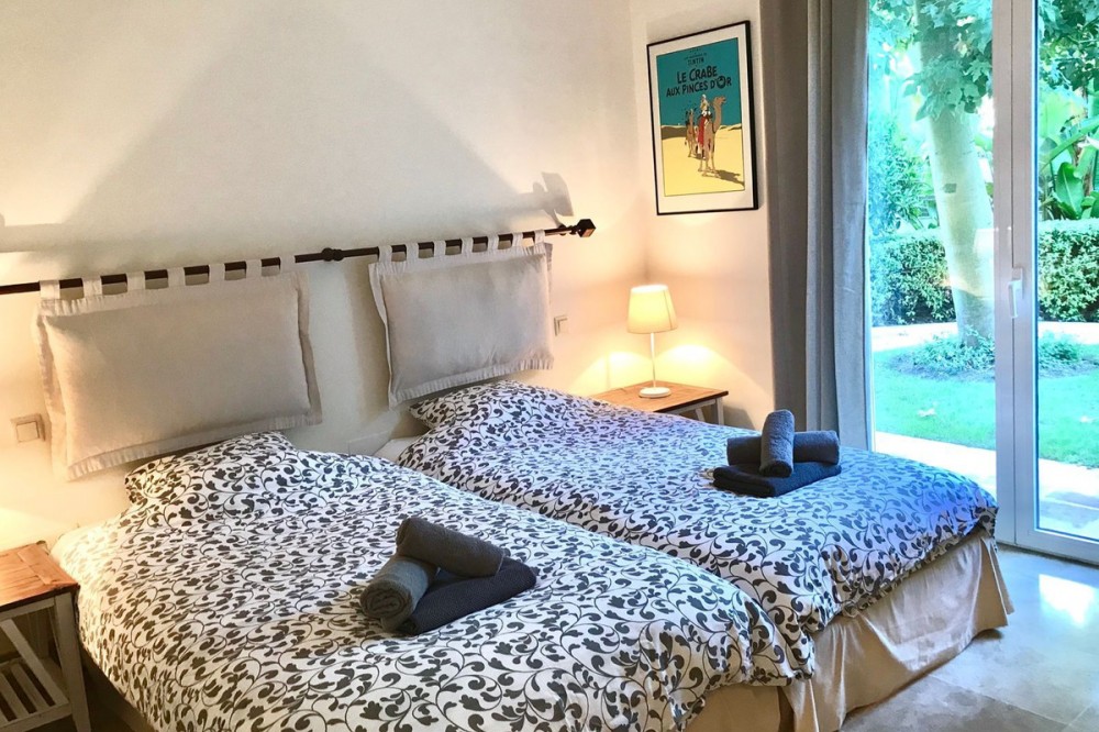 - Stunning Luxury Apartment with Panoramic Countryside Views – Frontline Golf at Los Flamingos Located in the heart of the prestigious Los Flamingos Golf Resort, this elegant 3-bedroom, 3-bathroom apartment stands out for its spacious interior, refined finishes, and spectacular open views across the countryside. A true haven of peace, nestled in a secure and beautifully landscaped setting, offering tranquillity, comfort, and exclusivity. From the moment you enter, the sense of space and natural light is immediately striking. The apartment features high ceilings, integrated air conditioning, and underfloor heating in all bathrooms, ensuring comfort throughout the year. The fully equipped kitchen includes a breakfast table and opens directly onto a charming side terrace, perfect for morning coffee or casual dining. It also connects to a separate laundry room, discreetly integrated into the layout. Additional storage space is located in the hallway for maximum practicality. Each of the three bedrooms is en-suite and has direct access to a terrace, creating a seamless indoor-outdoor flow. The master bedroom opens onto the main terrace, allowing you to enjoy the views and sunshine from the moment you wake up. One of the property’s most impressive features is the 140 m² terrace, sun-drenched all day and divided into three distinct zones: a relaxation area, an outdoor dining space, and a lounge corner for entertaining or quiet evenings under the stars. All windows are fitted with electric shutters for added security and convenience. The apartment is situated in an exclusive low-density complex, surrounded by manicured Tuscan-inspired gardens and offering access to a large turquoise communal swimming pool. With only a few units in the development, peace and discretion are guaranteed. The property is sold fully furnished, featuring high-quality materials and tasteful, timeless décor. A private spacious parking space and storage room are included in the price.