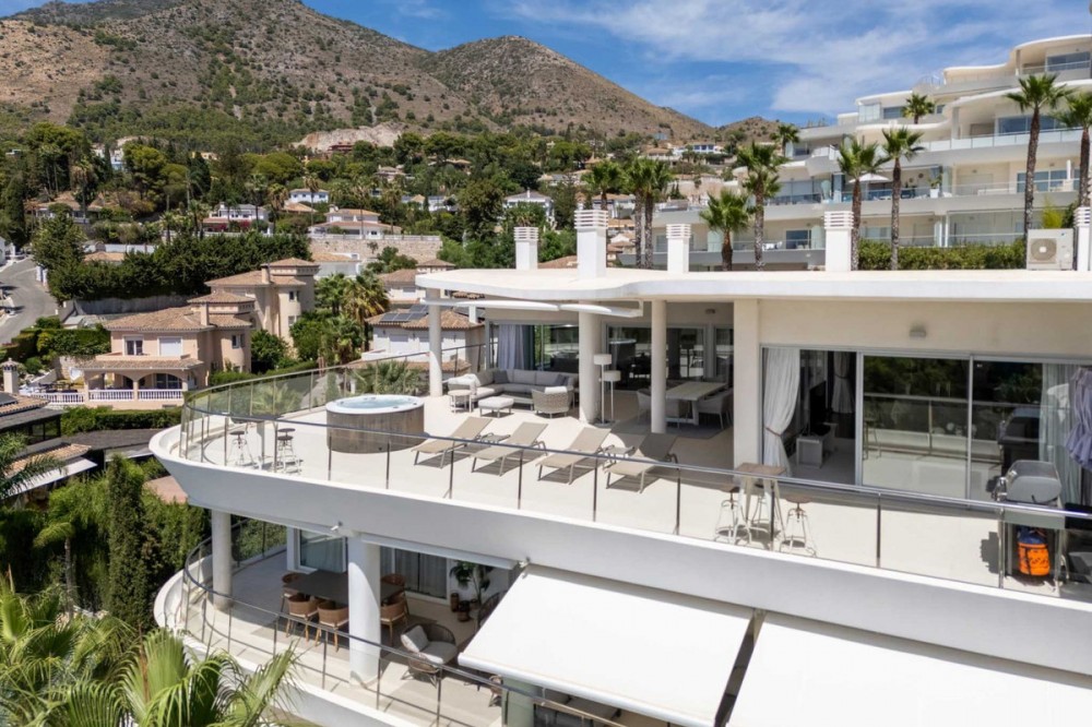 - Reserva del higueron 3 bed penthouse with 160 sqm terrace Welcome to a penthouse that is more than a home — it’s your private gateway into one of the Costa del Sol’s most prestigious communities. Reserva del Higuerón is a secure haven of luxury, wellness, and Mediterranean sophistication, where every detail is created for those who expect nothing but the best. This spectacular corner penthouse in the Hill Collection boasts views of the Mediterranean and even the distant shores of North Africa. With 285 m² of contemporary elegance, floor-to-ceiling windows flood the interiors with natural light, framing the sea from sunrise to sunset. The property is offered fully furnished with high-quality Scandinavian design pieces that combine warmth, style, and timeless sophistication. Extras include a 65” premium TV with a Sonos surround sound system — ensuring the home sounds as good as it looks. Inside, you’ll find three spacious bedrooms and three elegant bathrooms, including a master suite with ensuite bath and private terrace access. Step outside to your expansive sun-soaked terrace, complete with a jacuzzi and outdoor shower — perfect for al fresco dining, entertaining friends, or relaxing in your private spa. Two generous parking spaces and a storage room add practicality to the luxury. Life in The Hill Collection means world-class resort living at your doorstep: • Three pools, including a spectacular infinity pool • Business center • 24-hour security Just steps away, the Higuerón Resort & Hotel Curio collection by Hilton offer even more: • Sports club with gym, paddle & tennis courts, beach volleyball, Pilates, yoga • Higuerón Tennis Center with pro-level facilities • Nagomi Spa with 13 treatment rooms and serene relaxation areas • Michelin-star dining, plus cafés and bars Here, every day flows effortlessly — from a morning swim to a spa session, a beachside lunch, and sunset drinks on your terrace — all without leaving the community. This is more than a property. It’s the Reserva del Higuerón lifestyle: secure, exclusive, and truly one of a kind. Your best life begins here.