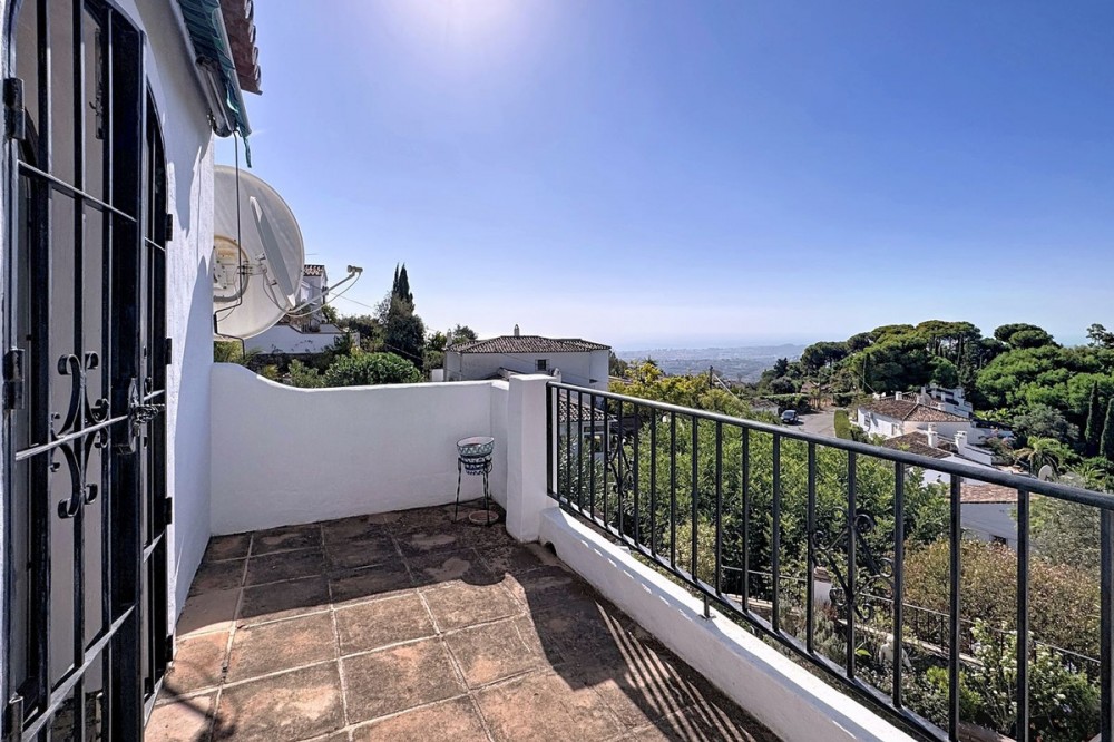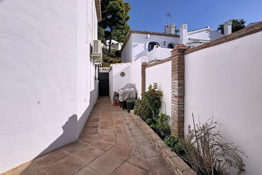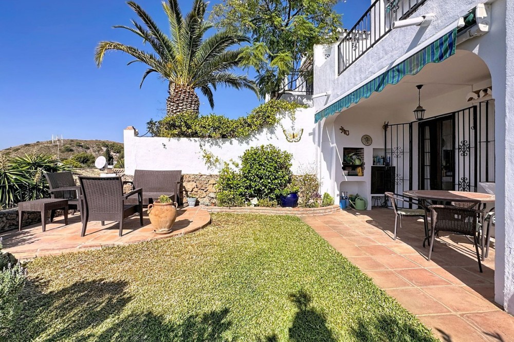 - Charming Semi-Detached House with Sea Views in Mijas La Nueva Situated in the sought-after urbanisation of Mijas La Nueva, just a few minutes from Mijas Pueblo, this lovely semi-detached house combines Andalusian character with comfort, stunning views and great community facilities. This bright and inviting home enjoys beautiful panoramic views of the Mediterranean and surrounding mountains. The main level features a spacious living and dining area with a cosy fireplace, a fully fitted kitchen, and access to a sunny terrace — perfect for outdoor dining and relaxing. Upstairs are two bedrooms with fitted wardrobes and a shared bathroom, including a main bedroom with its own private terrace offering spectacular views. A third bedroom is located on the lower level, providing extra privacy — ideal for guests, an office, or a hobby room. Outside, the house boasts a private, low-maintenance garden surrounded by mature greenery, ideal for sunbathing or enjoying the tranquil setting. Community & Facilities Located within a peaceful and beautifully maintained urbanisation featuring: Two communal swimming pools A tennis court Lush landscaped gardens Ample communal parking Location Just a few minutes’ drive or a short walk to Mijas Pueblo, with its charming whitewashed streets, cafés, and restaurants. Easy access to Fuengirola, the coast, and Málaga Airport, making it perfect as a holiday home or permanent residence. Semi-Detached House, Mijas, Costa del Sol. 3 Bedrooms, 2 Bathrooms, Built 116 m², Garden/Plot 79 m². Setting : Mountain Pueblo, Urbanisation. Orientation : South. Condition : Good. Pool : Communal. Climate Control : Fireplace. Views : Sea, Mountain, Panoramic, Garden. Features : Covered Terrace, Fitted Wardrobes, Private Terrace. Furniture : Optional. Kitchen : Fully Fitted. Garden : Private, Landscaped, Easy Maintenance. Parking : Open, Street, Communal. Utilities : Electricity. Category : Resale.