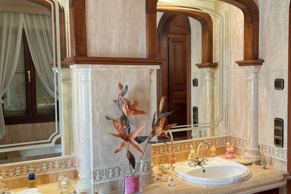 - Charming Andalusian-Style Villa in Alta Vista, San Pedro – Prime Location & Investment Opportunity Nestled in the prestigious Alta Vista urbanization of San Pedro de Alcántara, Marbella, this charming Andalusian-style villa offers a unique opportunity for renovation or investment. Set on a generous 850 m² plot, the property features 600 m² in total, including 450 m² of living space and a 150 m² basement with excellent potential for expansion. The villa’s traditional Spanish architecture exudes authentic character, with arched doorways, terracotta details, and a cozy fireplace that add to its timeless charm. With 4 bedrooms and 3 bathrooms, it provides a solid foundation for creating a bespoke family home or a profitable investment project. Spacious terraces with panoramic views invite you to enjoy the Andalusian sun, while the quiet surroundings ensure total privacy. Located just minutes from schools, restaurants, shops, and the beach, this property offers both convenience and tranquility. A private garage and ample outdoor space complete this unique opportunity to transform a classic villa into a modern masterpiece in one of Marbella’s most desirable residential areas. ✅ 600 m² Total (450 m² Living + 150 m² Basement) ✅ 850 m² Plot ✅ 4 Bedrooms / 3 Bathrooms ✅ Andalusian Architecture – Ideal for Refurbishment ✅ Spacious Terraces with Panoramic Views ✅ Cozy Fireplace, Private Garage ✅ Excellent Investment Potential – Prime Location in Alta Vista