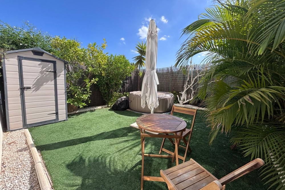 - Just a 7-minutes drive from the beach and shops, this elevated ground-floor apartment is your perfect coastal ✅ Charming private garden – ideal for relaxing or hosting BBQs! ✅ Spacious & modern open-plan living area with a fully equipped semi-open kitchen – perfect for entertaining! ✅ master suite with a sleek shower bathroom and built-in wardrobe. ✅ Generous second bedroom plus an additional stylish bathroom. ✅ A large terrace with removable windows, seamlessly extending your living space for year-round enjoyment! ???? Top Features: ❄️ Reversible air conditioning + ceiling fans in every room for ultimate comfort. ???? Double-glazed windows for peace and quiet. ???? Private underground parking space included. ???? Community pool to cool off in style! ???? Bonus: The entire residence will be freshly painted white next year for a crisp, modern look!