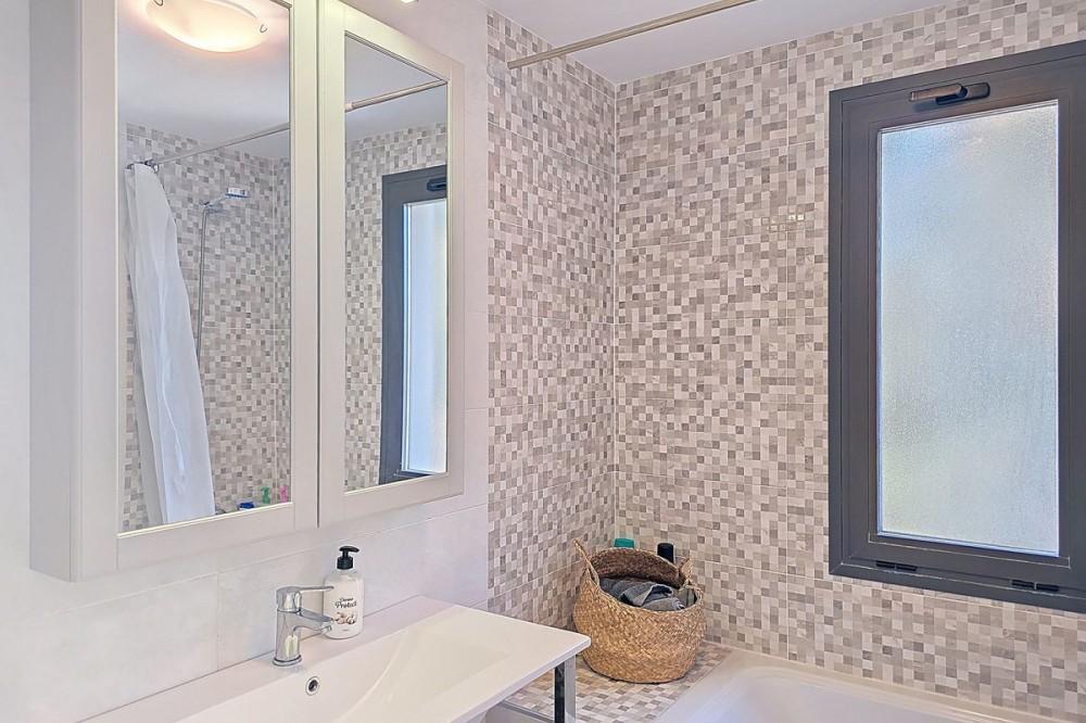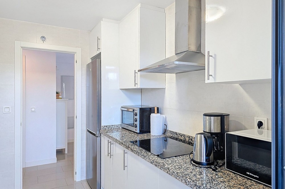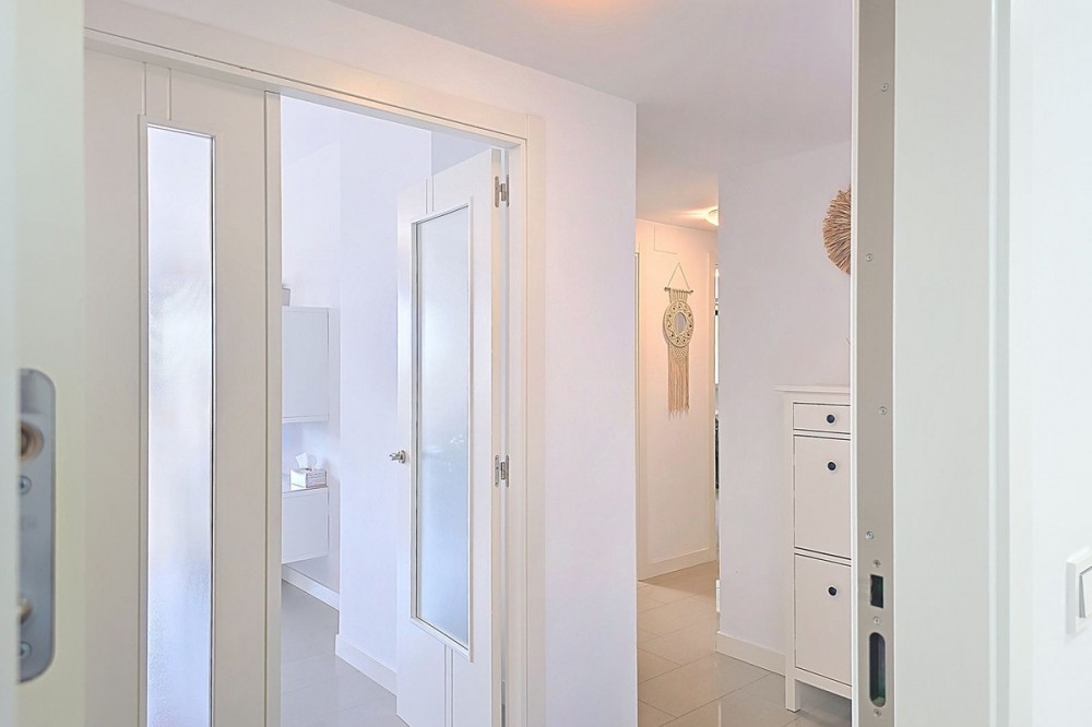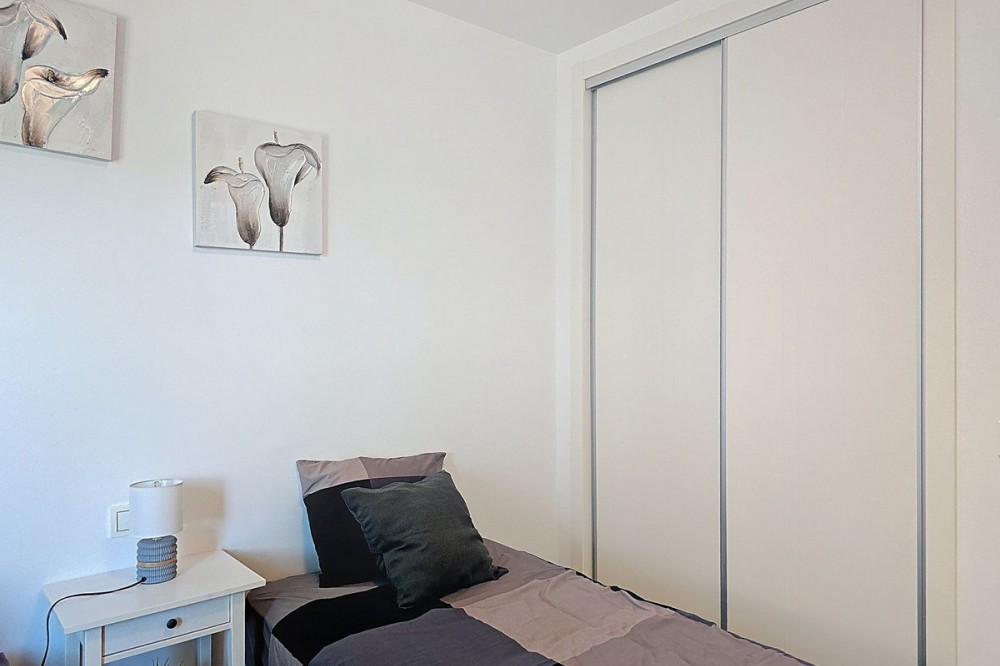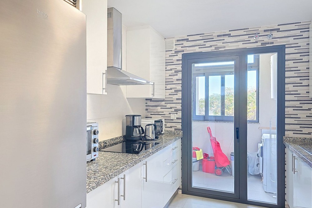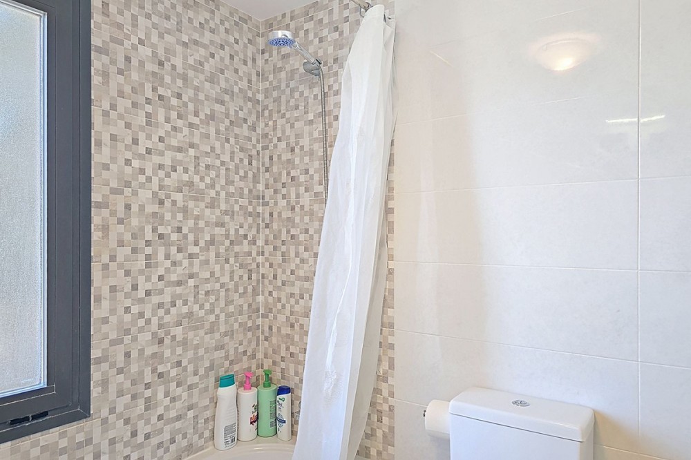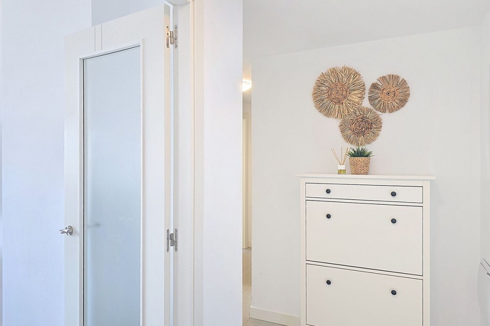 - Modern flat in a prime location in Torre del Mar – close to the sea and amenities This beautiful first-floor flat is part of a modern residential complex that was completed in 2017. It is within walking distance of the beach, shops and restaurants, and only a 30-minute drive from Málaga Airport – the ideal place for those seeking comfort, tranquillity and the Mediterranean lifestyle. With a built area of 91 m² and a covered terrace of 6 m², this property offers a wonderful feeling of space and light. ✨ Layout The property has two bedrooms and two bathrooms (one of which is ensuite). The spacious living room opens onto the cosy covered terrace, perfect for enjoying breakfast in the morning sun or a glass of wine at sunset. The fully equipped kitchen is practical and modern, with a separate laundry room, dishwasher, oven, microwave and large refrigerator. - Bedroom 1 (street side) Spacious storage cupboard and extra storage space under the bed Electric shutters En-suite bathroom with bath, shower, bidet, toilet and washbasin - Bedroom 2 Cupboard space View of a charming park - Bathroom 2 Shower, washbasin and toilet (compact but practical) - Extras and amenities: Underground parking space for one car Private storage space (storage room) in the basement Central air conditioning (hot/cold) Saltwater swimming pool with children's pool Padel court, petanque court and playground within the complex Community fees: approx. €65/month A modern, ready-to-move-in flat with excellent amenities, just minutes from the sea and the bustling centre of Torre del Mar. Ideal as a permanent residence, holiday home or investment on the sun-drenched Costa del Sol. ☀️