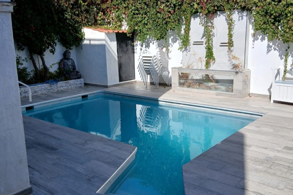 - Townhouse, Estepona, Costa del Sol. 4 Bedrooms, 4 Bathrooms, Built 240 m², Terrace 80 m², Garden/Plot 150 m². Setting : Town, Commercial Area, Village, Close To Shops, Close To Town, Close To Schools, Urbanisation. Orientation : North, South. Condition : Excellent. Pool : Private. Climate Control : Air Conditioning, Hot A/C, Cold A/C. Views : Mountain. Features : Covered Terrace, Fitted Wardrobes, Near Transport, Private Terrace, Solarium, Satellite TV, WiFi, Guest Apartment, Guest House, Storage Room, Utility Room, Ensuite Bathroom, Access for people with reduced mobility, Marble Flooring, Double Glazing, Staff Accommodation, Near Church, Fiber Optic. Furniture : Fully Furnished. Kitchen : Fully Fitted. Garden : Private. Parking : Garage, Private. Utilities : Photovoltaic solar panels, Solar water heating. Category : Resale.