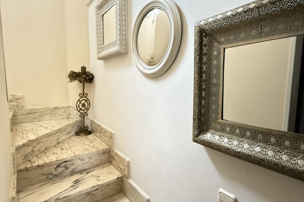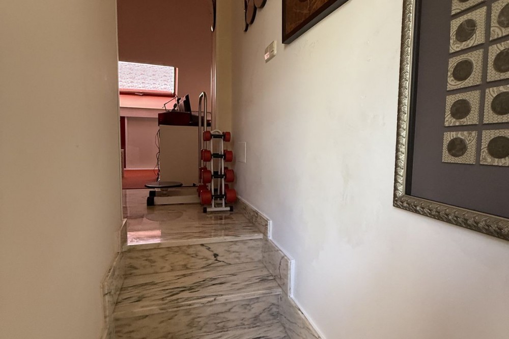 - A REAL JEWEL IN THE HEART OF BENÁLMADENA with partial sea view: a four-storey semi-detached house with private lift (!) in a peaceful and beautifully maintained community. The property offers everything you need to enjoy your life in the Costa del Sol. The main level features a lovely living room with dining area and an access to a spacious terrace and a garden, a fully fitted kitchen and a lavatory. Downstairs you will find another living room, two bedrooms with en suite bathrooms and two laundry/storage rooms. Upstairs from the main level there are another two bedrooms with bathrooms and each one with a terrace. From a larger one you have partial view of the Mediterranean Sea The highest level features a room used as an office and a gym. From the property there's less than 1500 m to the sea, Benalmádena is a well-connected town with shops, restaurants and all the amenities, you need to live in the Coast. Besides it has many places worth visiting, from the Castillo Bil Bil and Puerto Marina at the sea to the viewpoint in the mountain, you can reach by the cable car as it is almost 800 meters above the sea level. Don't miss this unique opportunity, book your visit and find the best place to live in the Coast of Sun
