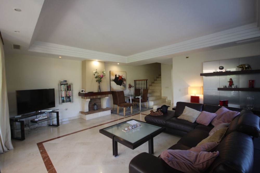 - Fabulous semi-detached house located in Riviera del sol, Mijas Costa, next to the toll that connects with Malaga 20 minutes and Marbella center 10 minutes. Ideal for families due to its comfort, beautiful common areas, two fantastic swimming pools. The property is in very good condition, it consists of 4 bedrooms and two full bathrooms, one en suite, plus a guest toilet. Private garden with maintenance included in the community as well as water. The property has excellent qualities, Siemens appliances, double glazed windows, marble floors, etc. Security cameras throughout the urbanization. Bus stop 3 minutes walk, school bus stops 100 meters away. Ideal to enjoy an excellent vacation or live, beaches, restaurants, shopping center just 5 minutes away...