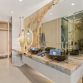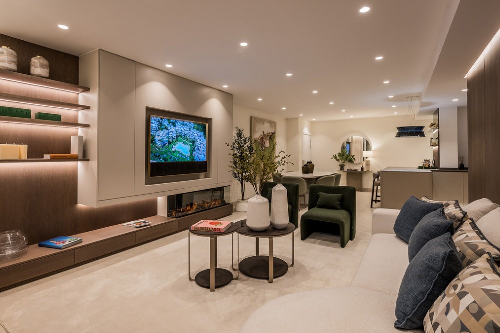 - Experience coastal luxury in this exclusive ground-floor apartment located in Bahía del Velerín, one of the most sought-after beachfront communities between Marbella and Estepona. This prime location offers direct access to one of the best beaches on the Costa del Sol and a peaceful tropical setting surrounded by lush gardens. The property offers 126 m² of built area plus a 27 m² private terrace, perfectly blending modern elegance and comfort. The open-plan living area connects seamlessly to the terrace and garden, creating a bright and tranquil atmosphere. The designer kitchen is fully equipped with top-quality appliances, including a Thermomix, invisible hob, wine fridge, and electric fireplace. With 3 bedrooms and 2 bathrooms, the master suite stands out with a walk-in closet and Japanese toilet. Additional features include a Bang & Olufsen sound system, hidden laundry, built-in bar, and custom-made wardrobes. The apartment comes fully furnished, with an underground parking space and storage room included. The gated community provides 24-hour security, a beautiful pool area with snack bar, and direct beach access. A rare gem where contemporary design meets coastal serenity — ready for you to move in and enjoy the best of Mediterranean living.