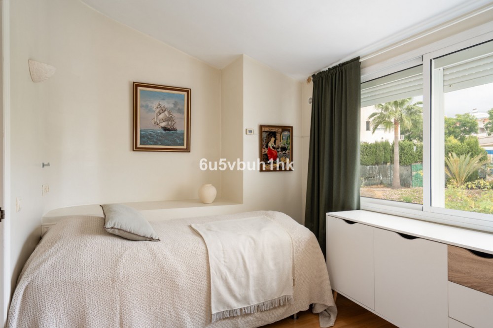 - Located on a peaceful street just off Avenida de las Palmeras, this bright and well-maintained townhouse offers everything you need for comfortable family living or as a wonderful holiday home. The current owner has lived in this lovely home since it was built – a true testament to the quality of the property and the charm of its surroundings. The upper floor features three bedrooms – the master bedroom with an ensuite bathroom, and two additional bedrooms sharing another bathroom. From the upper level, you can enjoy beautiful views and stunning sunsets over the sea. The main floor welcomes you with a small gated front patio, a semi-open kitchen, and a spacious living and dining area with access to a large terrace perfect for outdoor dining and barbecues. There’s also a guest toilet on this level. On the lower floor, you’ll find two more bedrooms, a bathroom, a laundry room, and even a private sauna. From here, you can access the back patio, which can also be used as private parking. The community pool is located just across the street, and within a few minutes’ walk you’ll find a beautiful park, excellent public transport connections, and all local services. The beach is only a 7-minute walk away, and the lively center of Arroyo de la Miel just 10 minutes. A well-cared-for family home with a fantastic location, great layout, and the perfect mix of comfort and convenience.