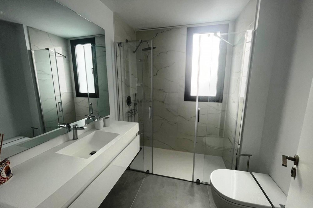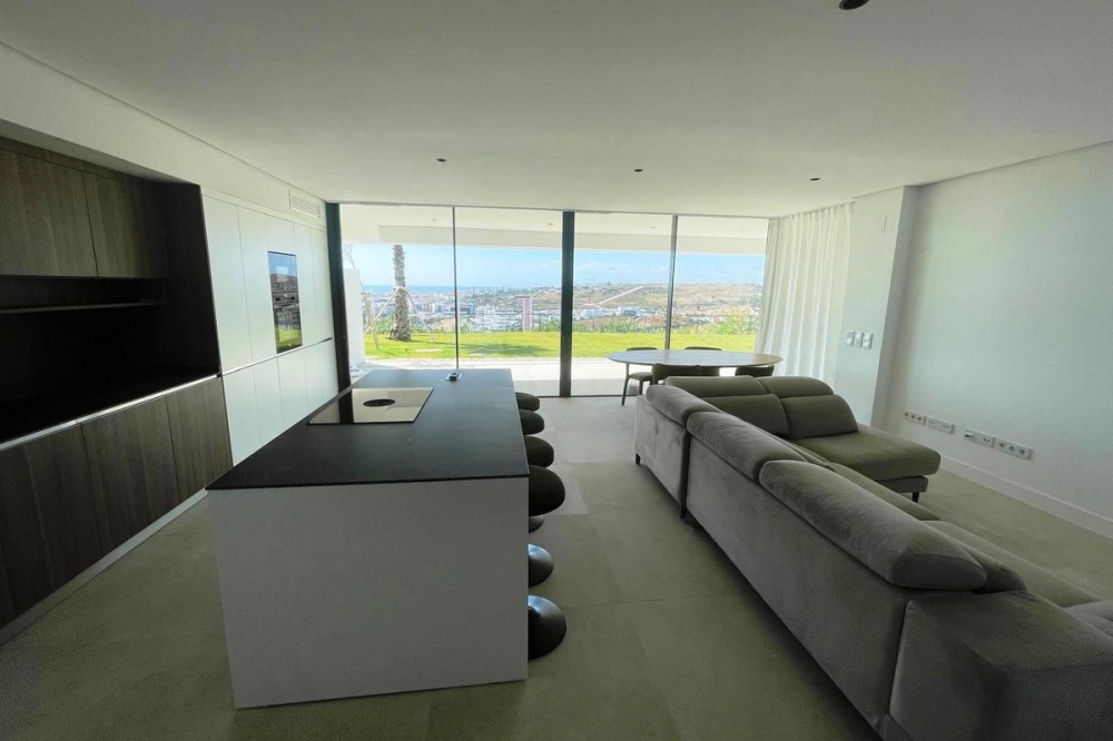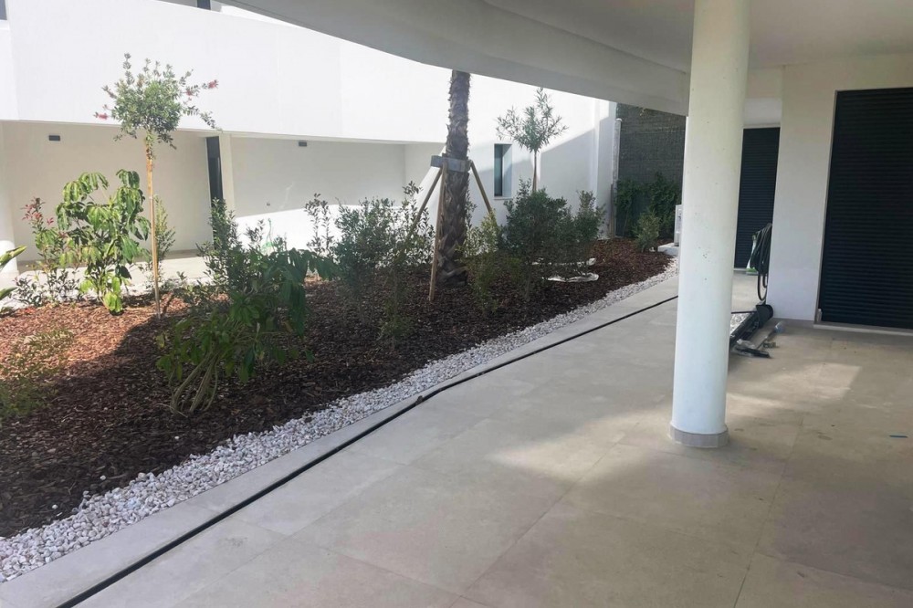 - Ground floor apartment in new urbanization, 4 bedrooms, 3 bathrooms, luxurious view of Estepona and the sea, large glazed terrace with access to the lawn. Guaranteed absence of any frontal development. Two parking spaces. Large storage room with direct access from the landing where the elevator and neighboring apartments are located. Full air conditioning, washing machine and dryer. Huge built-in refrigerator and freezer. The kitchen is equipped with a stove with an integrated extractor hood. State-of-the-art plumbing. In the inner patio, there is the possibility to build a private winter garden or an additional bedroom. The complex has a huge pool and a sports complex with modern equipment. South-facing orientation. The living room, kitchen, and two bedrooms open onto the terrace. The other two bedrooms have a view of the patio. The apartment includes a laundry room with a boiler, washing machine, and dryer. Year of construction 2025.