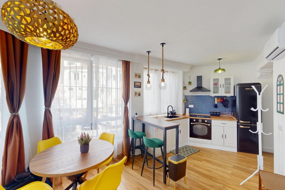 - For sale: This charming 38 m2 apartment, located in the heart of Nerja, Málaga, was completely and tastefully renovated in the summer of 2025. It offers a compact yet stylish living space with two bedrooms, one bathroom, and an open living and dining area. The modern kitchen features a refrigerator, oven, white cabinets, and wooden countertops, with smart storage solutions that make efficient use of the space. The bright dining area with large windows creates an inviting atmosphere, while the warm wooden floors add a harmonious feel. The bedrooms are thoughtfully designed, functional, and comfortable, and the bathroom is modern and efficiently laid out. With multifunctional furniture and a clever layout, the apartment feels spacious and practical. It is within walking distance of the Mediterranean Sea, Nerjas most beautiful beaches, and the famous Balcón de Europa with panoramic sea views, charming terraces, and lively streets. Málaga Airport is just 70 kilometers away, about 5060 minutes by car, and public transport connections are good. Restaurants, cafes, shops, and cultural attractions are all close by, making this apartment perfect for both personal use and rental. This property combines efficient living, modern finishes, and a prime location in Nerja, offering a unique opportunity to enjoy Mediterranean life on the Costa del Sol. We are pleased to be able to present this dream property to you soon, either personally or via virtual viewing. Because this world is unique - just like our Axarquía. In Andalusia. On the Costa del Sol. Here, on the sunny side of life...