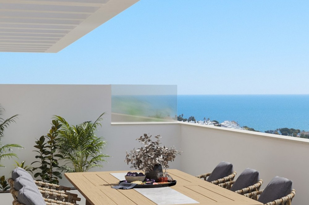 - 2 bed, 2 bath apartments from 611.000 euros 3 bed, 2 bath apartments from 695.000 euros Prices excl. 10% VAT Ready for ocupation 2025 48 apartments in la Cala de Mijas with 2 and 3 bedrooms, including garage space and utility room, swimming pool and gym in a small enclave with lovely views.