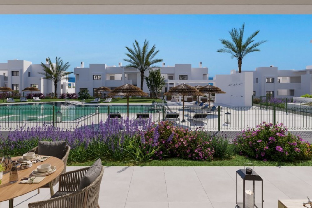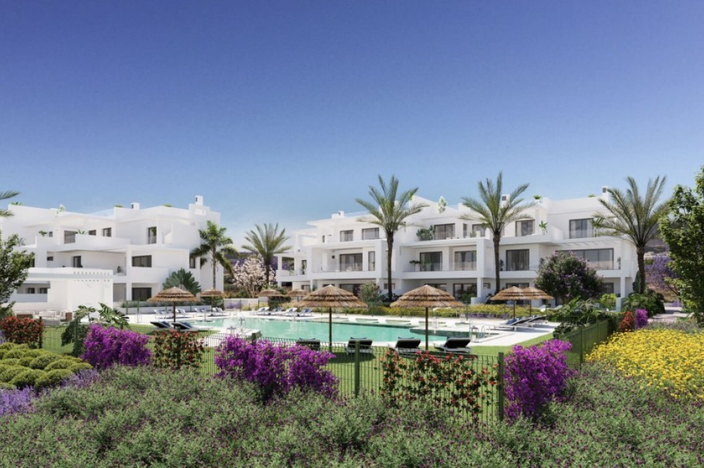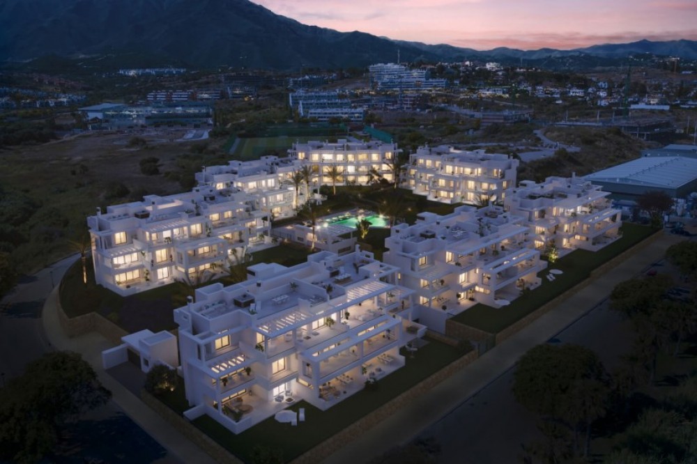 • 2 bed, 2 bath apartments SOLD! 3 bed, 2 bath apartments SOLD! 2 bed, 2 bath penthouses from 755.000 euros (incl. jacuzzi) Prices excl. 10% VAT and incl. a parking space and storage room. Wake up every morning bathed in sunlight only a short distance from the cooling waters of Estepona beach. Surrounded by natural landscapes and superb golfing - welcome home. The properties at Mãla Kai are ground floor properties with a garden, 1st floor apartments with terraces, and 2nd floor penthouse apartments with a stunning solarium, perfect for relaxing or entertaining. These stunning homes include a modern air-source heat pump to efficiently cool or warm your home while taking care of the environment. The modern open-plan layout offers a stunning kitchen, integrated into a spacious living area. The kitchen includes a ceramic glass hob, electric oven, refrigerator, dishwasher, washer/sink and a microwave. You will find motorised blinds in both the living room and the master bedroom. The bathrooms feature amazing rain-effect showers. The main bathroom boasts underfloor heating to keep your feet warm during the winter months. The communal features include a swimming pool, gym, yoga area, and landscaped gardens where you can walk and relax amongst nature.