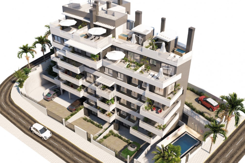 - 2 bedroom, 2 bathroom apartments from 377.000 euros 3 bedroom, 2 bathroom apartments from 430.000 euros Prices excl. 10% VAT - Ready for occupation summer 2026 It is a magnificent project, consisting of 22 homesof 2 and 3 bedrooms with magnificent terraces and views of the Mediterranean. All have parking space for greater convenience. it is distinguished by its functionality highlighting the living room, dining room and open door kitchen. Its large terrace makes the light the protagonist of the house and brings harmony and comfort. In addition, you can enjoy the solarium and rooftop pool.