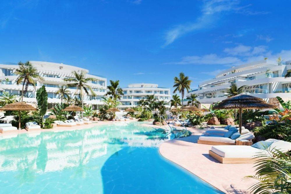 - 2 bed, 2 bath garden apartment with a large terrace of living room and the possibility to create a third bedroom!! Contract re sale. Owner will pay transfer tax! Property cannot be viewed till after completion same as buying an off plan property with a developer. Contracts will be changed in name of new buyer! The Palms also boasts an expansive resort area with beach entry pools, a lap pool, indoor and outdoor gyms a kids play area and ample natural greenery in which families can spend their days exploring. The apartment benefits from high end fittings and fixtures, including open plan kitchens A-rated energy appliances as standard and has views of the sea due to the hilltop location. fMalaga Airport, Fuengirola, Torremolinos and Malaga city are in one direction with Marbella and Estepona only a short drive the other. Mijas has easy access to the very best of The Costa del Sol and beyond. Extras in this are: - 2 parking spaces - storage room (8.0 M2) - additional 46 M2 space to the apartment (attached internal storage) see floor plan - cooking island as additional work - 2x walk-in shower (instead of bath) - outside terrace 102 M2 of which 32 M2 covered with pergola - sea View