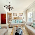 - Located in the western part of Estepona, near Estepona Stadium and the Felipe VI Theater, this bright and spacious townhouse represents a unique opportunity for those seeking comfort, spaciousness, and proximity to all amenities. With an excellent orientation and located in one of the most dynamic areas of the city, the home stands out for its functionality and privileged location, ideal for both families and those looking to enjoy the vibrant urban lifestyle in a residential area. The property comprises three spacious bedrooms, two full bathrooms (one en suite), and a guest toilet. The cozy and bright living room features a fireplace and direct access to a porch perfect for family gatherings. Its spectacular 40 m² open terrace is ideal for enjoying the Mediterranean climate and hosting outdoor barbecues. The separate dining room, fully equipped kitchen, and practical porch complete the main living spaces. It also has a 55 m² private garage, a highly valued feature in the area. Its outstanding features include marble floors, built-in wardrobes, a security door, individual air conditioning in the master bedroom and living area. With fiber optic internet access. The home comes partially furnished and enjoys mountain, city, and street views. Pets are allowed, making it a perfect choice for the whole family. It is in excellent condition and is ready to move into. The surrounding area offers a wide range of services and amenities just minutes away: shops, supermarkets, secondary schools, schools, a theater, a stadium, a sports center, bars, restaurants, and public transportation. Furthermore, the proximity to the port, the beach, and golf courses allows you to enjoy an active and healthy lifestyle in one of the best locations on the Costa del Sol. Don't miss this unique opportunity. For more information or to arrange a viewing, please don't hesitate to get in touch. This townhouse could be the home you've always dreamed of in Estepona!