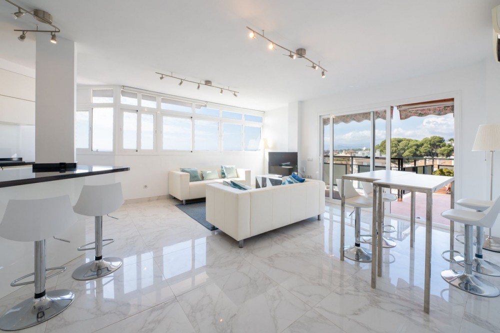 - Renovated apartment with large terrace and sea and mountain views in the centre of Marbella We present this beautiful, completely renovated apartment, located in the heart of Marbella, just a few steps from the beach, restaurants, shops and all amenities. The property has two spacious bedrooms, a large bathroom and a bright living-dining room with an open-plan kitchen, designed to offer comfort and style in every corner. From its large private terrace, you can enjoy stunning panoramic views of the Mediterranean Sea and La Concha mountain, creating the perfect space to relax, sunbathe or enjoy pleasant evenings outdoors. Thanks to its privileged location and impeccable renovation, this flat is a unique opportunity as a primary residence, second home or investment in one of the most exclusive areas of the Costa del Sol.