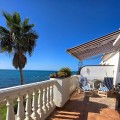 - Exceptional front-line beach property newly listed in Akardia Beach. Located in the highly desirable Maona Urbanization, we are pleased to present this beautiful two-bedroom apartment offering unobstructed views of the Mediterranean Sea and Arkadia Beach. Just a short walk to the historic lighthouse and beachfront access, this apartment benefits from its location on the beachside of the coastal motorway, ensuring a peaceful environment free from noise pollution. Nearby amenities include Cala de Mijas (3 minutes), Myarma Shopping District (3 minutes), Marbella (15 minutes), and Malaga International Airport (15 minutes). Upon entering this spacious and welcoming residence through the open-concept kitchen and living area, you will be immediately captivated by the spectacular sea views provided by the floor-to-ceiling sliding glass doors. Its south-facing orientation allows for abundant sunlight throughout the year, which can be enjoyed from both the interior and exterior balcony. The kitchen has been recently upgraded with modern cabinetry and appliances. The master bedroom features floor-to-ceiling Venetian-style double-pane windows, filling the space with natural light and offering panoramic sea views. Large enough to accommodate a king-size bed, it also includes built-in wardrobes and an en-suite bathroom. The second bathroom contains a walk in shower and separates the master bedroom from the second bedroom, with the main living area situated to the side. Opening the sliding glass doors creates an indoor-outdoor living experience, with the terrace located only 20 meters from the beach. With an area of 27 square meters, the terrace is spacious enough to accommodate a grill and dining for up to eight guests, with additional space for a lounge area. The property also includes exclusive parking for two vehicles just outside the entrance and a private storage room for convenience.
