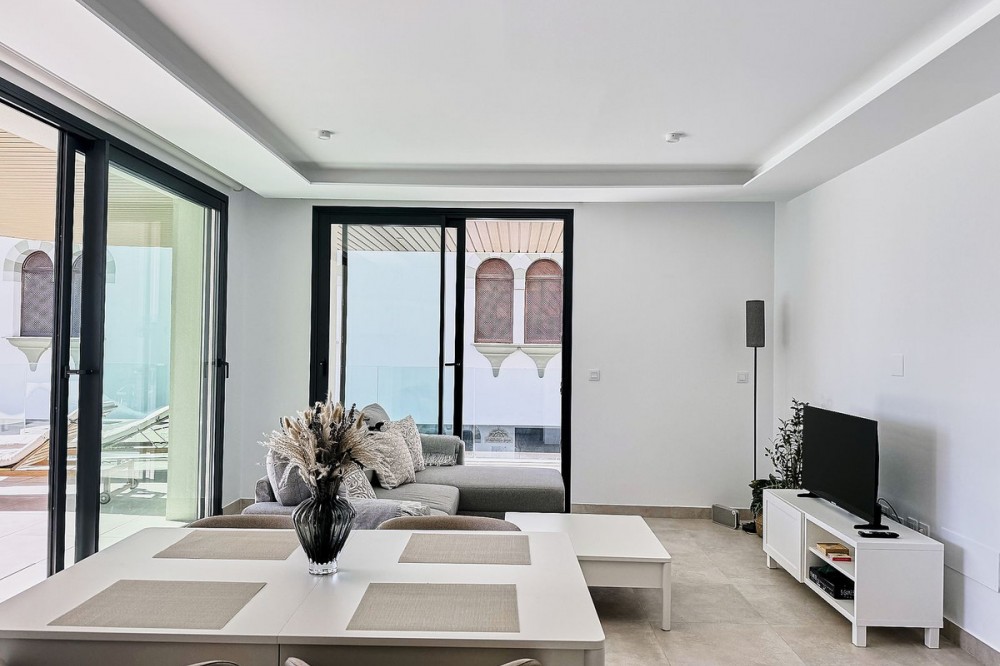 - Luxury Apartment in Jade Tower, Fuengirola Discover modern coastal living in this stunning 2-bedroom, 2-bathroom apartment with a spacious 57 m² terrace, located in the prestigious Jade Tower—one of Fuengirola’s most exclusive residential developments. Just steps away from the beach and the vibrant town centre, this resale property combines cutting-edge design, comfort, and a premium lifestyle. Property Highlights -Expansive open-plan living area with floor-to-ceiling windows and seamless access to the large terrace -57 m² terrace - perfect for al fresco dining, sunbathing and enjoying life with friends and family -Fully equipped contemporary kitchen with high-end appliances and sleek finishes -Master bedroom with en-suite bathroom and walk-in closet -Underfloor heating and air conditioning -Underground parking space and storage room included Exclusive Community Amenities Residents of Jade Tower enjoy access to world-class facilities, including: -Outdoor and indoor swimming pools -Spa with sauna and Turkish bath -Gym and yoga area -Co-working space and cinema room -24-hour security and concierge service Prime Location Ideally situated just 100 metres from Fuengirola’s golden beaches, this apartment offers easy access to shops, restaurants, and transport links, including the local train station connecting directly to Málaga Airport and city centre. A rare opportunity to own a resale property in one of the Costa del Sol’s most sought-after developments. Perfect as a permanent residence, holiday home, or investment opportunity. We have the keys for easy viewings. Contact us today for a viewing or more information.