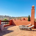 - Great townhouse in Bahía de las Rocas! This spacious property features three bedrooms, one of which has a lovely private terrace, and two bathrooms (one en-suite). The fully fitted kitchen connects to a generous living and dining area that opens onto a charming private terrace. In addition, the large basement offers excellent potential for conversion into two additional bedrooms. It also includes a storage/laundry room and a guest toilet. The impressive rooftop terrace of approximately 70 m² boasts panoramic views of the mountains and sea, stretching all the way to Gibraltar and the African coast. A private parking area for two cars is conveniently located directly in front of the property. Designed by the renowned architect Melvin Villarroel, the gated residential complex is set amid lush tropical gardens and features three swimming pools. The urbanization offers a serene and beautifully maintained environment, just a short drive from La Duquesa and the prestigious Sotogrande, home to an elegant marina, fine dining, boutique shops, and world-famous golf courses. Several Blue Flag beaches are also only minutes away.
