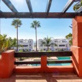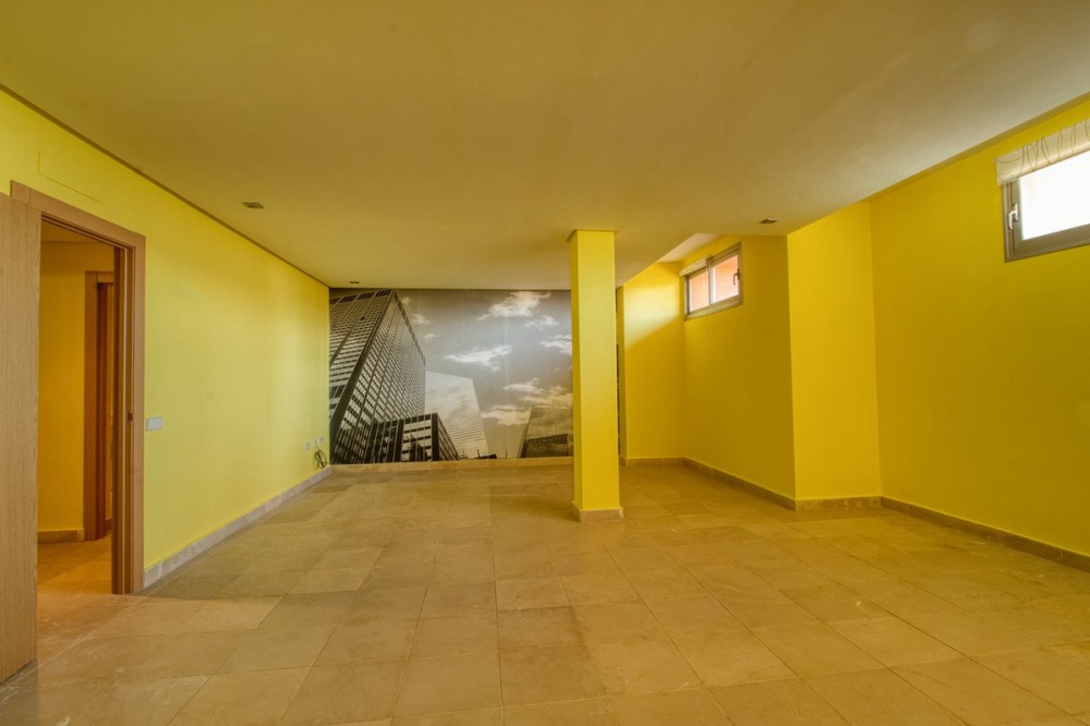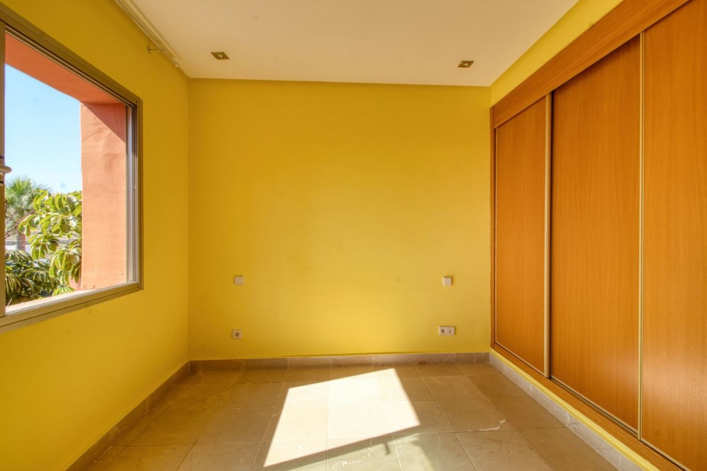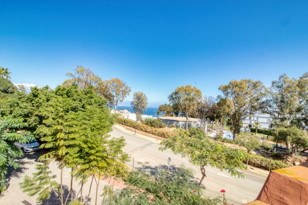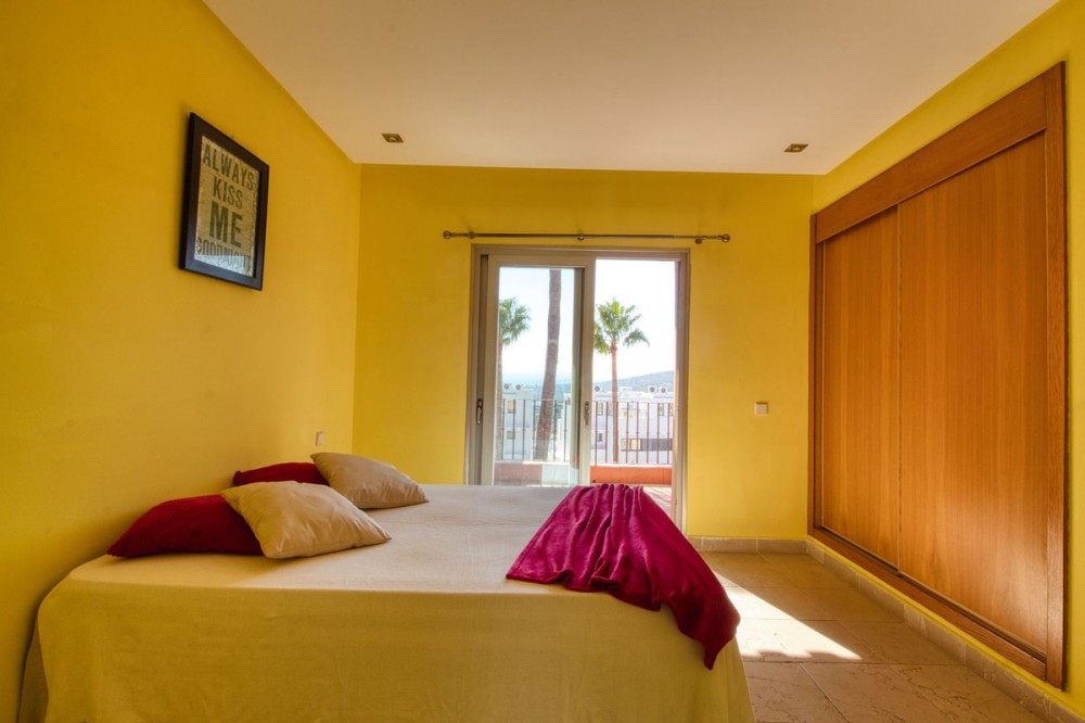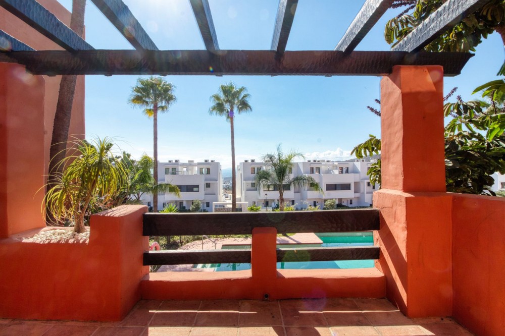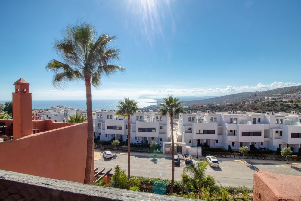 - Great townhouse in Bahía de las Rocas! This spacious property features three bedrooms, one of which has a lovely private terrace, and two bathrooms (one en-suite). The fully fitted kitchen connects to a generous living and dining area that opens onto a charming private terrace. In addition, the large basement offers excellent potential for conversion into two additional bedrooms. It also includes a storage/laundry room and a guest toilet. The impressive rooftop terrace of approximately 70 m² boasts panoramic views of the mountains and sea, stretching all the way to Gibraltar and the African coast. A private parking area for two cars is conveniently located directly in front of the property. Designed by the renowned architect Melvin Villarroel, the gated residential complex is set amid lush tropical gardens and features three swimming pools. The urbanization offers a serene and beautifully maintained environment, just a short drive from La Duquesa and the prestigious Sotogrande, home to an elegant marina, fine dining, boutique shops, and world-famous golf courses. Several Blue Flag beaches are also only minutes away.
