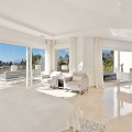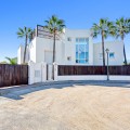 - Stunning contemporary-style villa located within a short distance to one of the best beaches in Marbella. Situated at the end of a cul-de-sac in a very peaceful and family-friendly area of other large villas, just 6 km from the centre of Marbella. Marbella Golf & Country Club and Santa Clara Golf are just a short drive away. This beautiful South-west facing property has been constructed with high-end quality materials. The property is built on 3 floors on a plot of 1438 m2 and is in very good condition. On the ground floor are 2 spacious lounge areas (one with biofuel burner fireplace), large central dining area with high ceiling, modern open-plan fully-equipped kitchen with built-in coffee machine and American fridge/freezer. Alongside the kitchen is a laundry room with washing machine and tumble dryer. There is also a guest toilet. On this level there is direct access through large sliding doors to a 70 m2 covered terrace with lounge area, dining area for 8 people and a large gas BBQ, all overlooking a lawned garden area with sea views. From this garden area there are 10 steps down to the large heated swimming pool which is very private. On the first floor of the property there is a bright seating/gaming area with floor to ceiling windows and 4 very spacious bedrooms, all with en-suite bathrooms and fitted wardrobes. The impressive master suite has spectacular views of the surroundings and the sea from its large private terrace. The second and third bedrooms also have superb sea views from a large, shared terrace. From the first floor are stairs up to the top level of the villa where you will find an impressive 90 m2 roof terrace with a covered dining area equipped with a gas barbecue and refrigerator along with a chill-out area from where you can enjoy majestic panoramic views of the Mediterranean sea and Marbella with its dramatic La Concha mountain range. The property has 2 gated driveway areas with parking for at least 6 vehicles. It is being sold fully furnished and also benefits from cream marble flooring, double glazing, hot & cold integrated air conditioning, electric persianas in the bedrooms, underfloor heating in bathrooms, alarm system and wireless Sonos home audio. The urbanisation is very quiet and safe with 24h security patrol. In the direct area you can find a selection of restaurants, supermarket, bakery, paddle/tennis court, gym/fitness centre and a children’s playground. Along the lovely sandy beach in both directions, there are a variety of restaurants, Spanish chiringuitos and beach clubs.