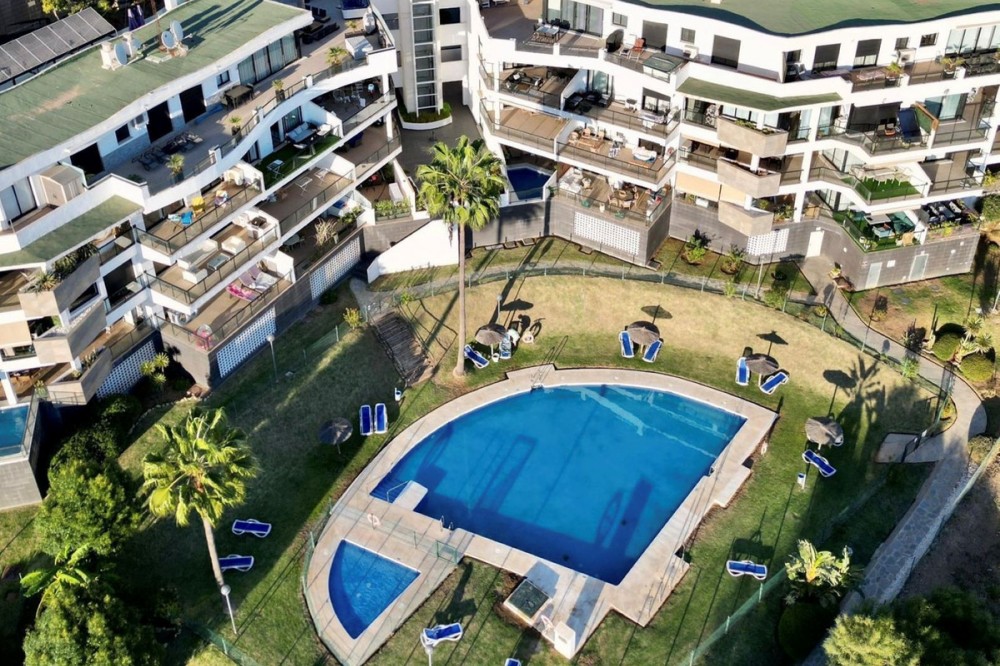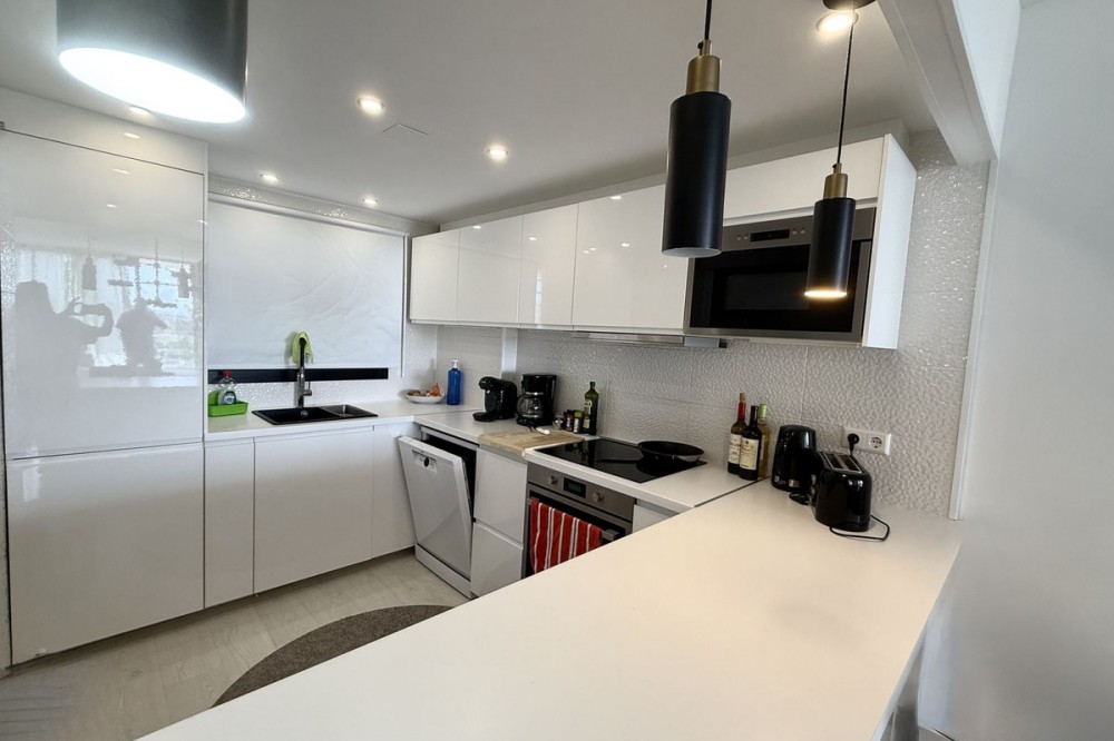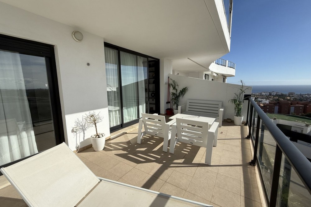 - FABULOUS PANORAMIC SEAVIEWS AND FULLY REFORMED APARTMENT!!! This immaculate and bright property comprises of entrance hall, luxury fully fitted open plan kitchen, lounge/dining room with patio doors leading to an amazing full apartment width terrace, south west facing for almost all day long sunshine and enjoying the most incredible sunset and sea views. In addition there are 2 double bedrooms with fitted wardrobes and 2 bathrooms. Accessed via lift or stairs, the property has a large underground carparking space and storage room. Sold with quality furnishings also. The community is immaculately kept and subtropical plants, lawns and of course the fabulous swimming pool! Riviera del Sol has beautiful beaches, an award winning golf course, tennis clubs and lots of bars, restaurants and shops. Easy access to the toll road motorway for speedy travel too! And, the apartment is sold with a holiday rental licence. Apartment built size 79m2 Garage 29m2 Storeroom 8m2