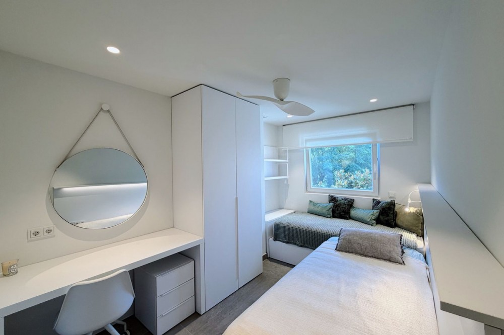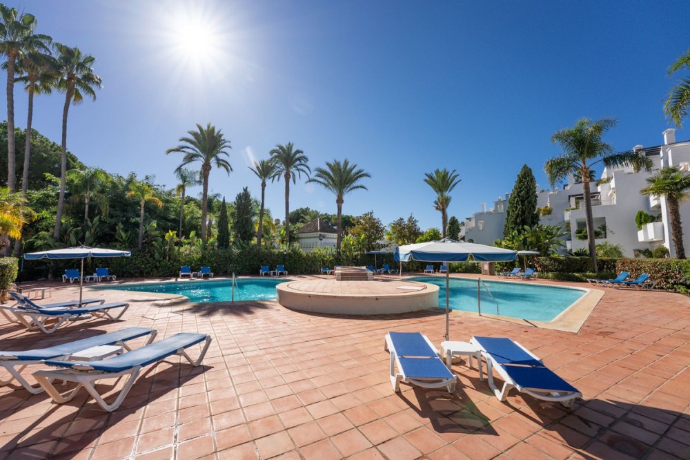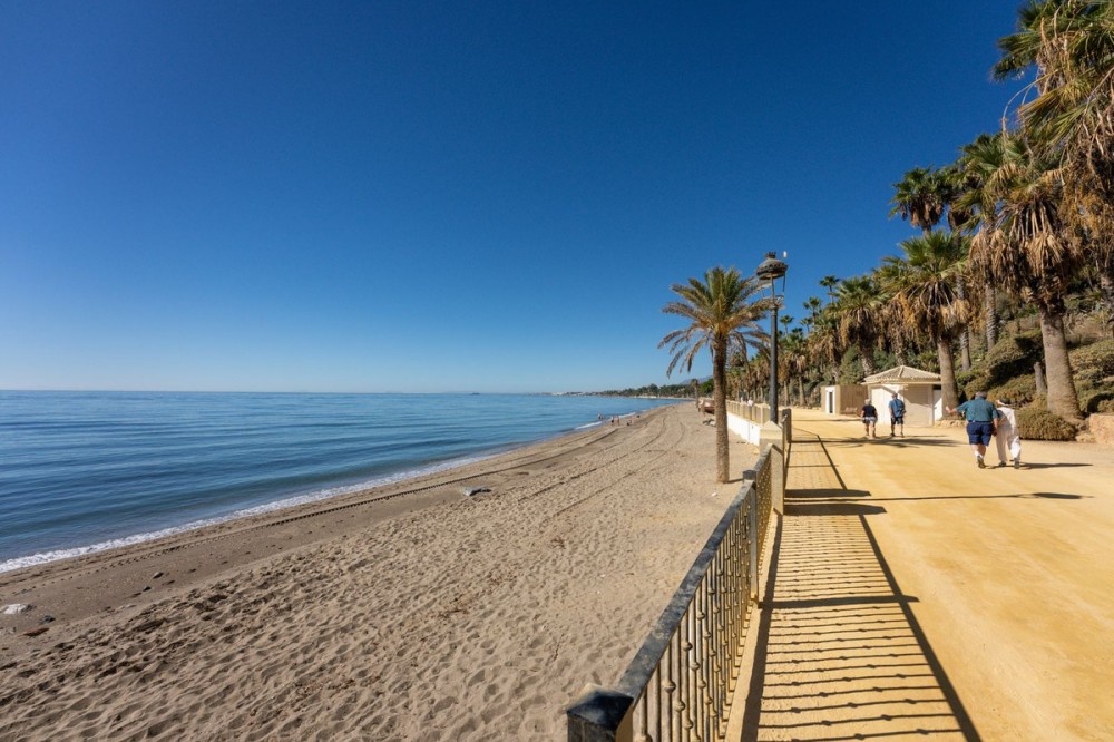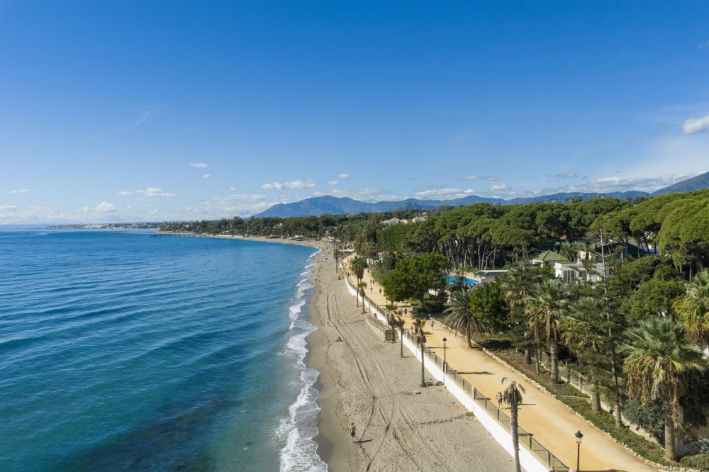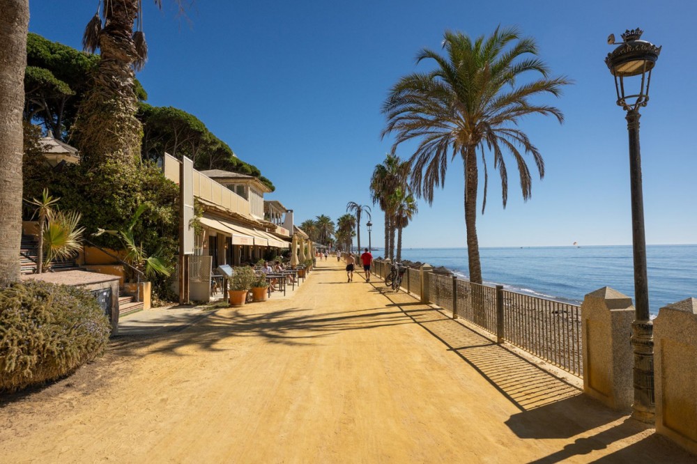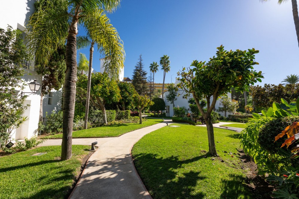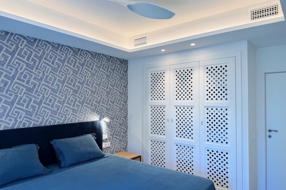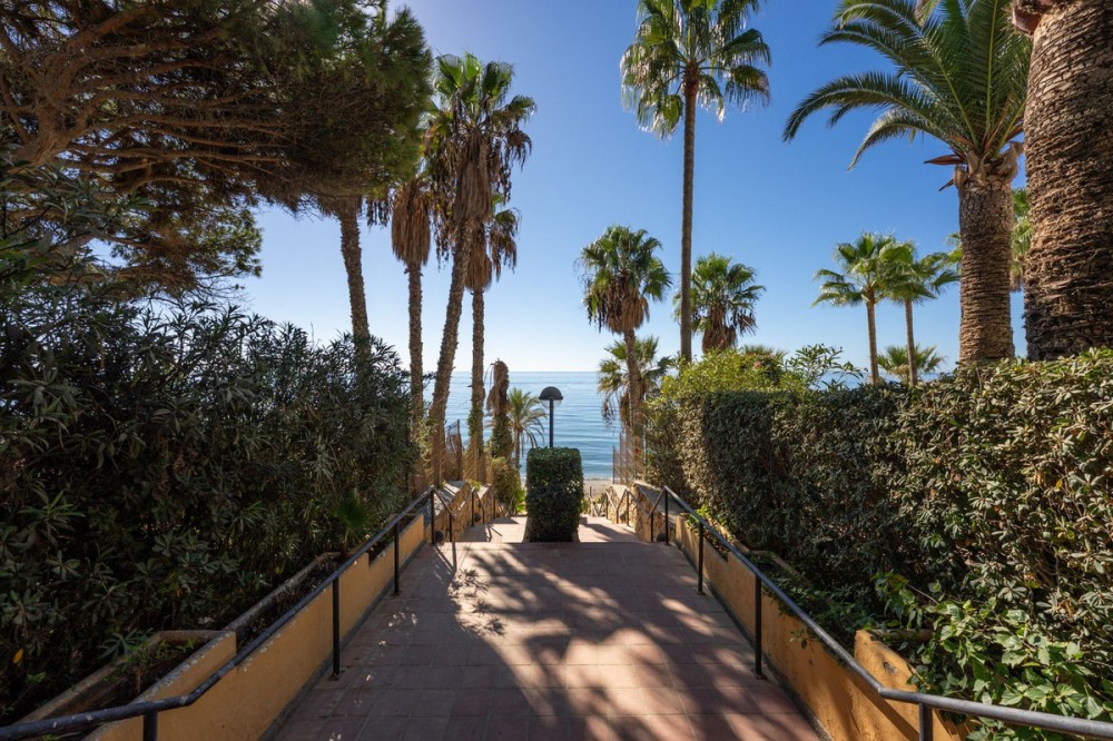 - Fully renovated unique apartment in Alhambra del Mar, Golden Mile, Marbella Apartment located on the first floor of the third phase of one of the most iconic and sought-after complexes on Marbella's Golden Mile. New on the market. Completely refurbished, including all electrical installations, all carpentry, PVC plumbing, hot/cold air conditioning, high-quality wooden windows with solar filter glass, large-format porcelain floors, microcement, designer lighting, etc. It consists of 3 bedrooms, 2 bathrooms (one of them ensuite), a large terrace with very pleasant views of the Mediterranean garden and the communal swimming pool. It also has a west-facing balcony. Siematic designer kitchen with Miele appliances, wine cooler, LED lighting, and ceramic hob with built-in extractor fan. Open-plan layout connecting the kitchen, living room with outdoor dining area, and covered terrace designed for relaxation with complete privacy. Exceptional quality. The interiors have been carefully selected by one of the most sought-after interior design studios on the Costa del Sol, complemented by internationally renowned furniture and lighting brands. Bathrooms with underfloor heating, Porcelanosa tiles and Italian-designed Inbani furniture. Boutique phase of the complex, very quiet and yet very close to the seafront promenade (2 minute walk)), restaurants, services, schools and the town centre. It has a large private storage room, gated communal outdoor parking for several vehicles and a communal swimming pool with beautiful Mediterranean gardens. A couple of minutes' walk from the beach, Gran Melia Don Pepe area, with a wide range of gastronomic, sporting and leisure activities. At the same time, it is located in a privileged, very quiet, safe and residential area in the heart of Marbella city centre. A unique opportunity to enjoy life close to the sea and at the same time the best part of Marbella city centre. Less than an hour drive to Malaga international airport.