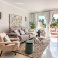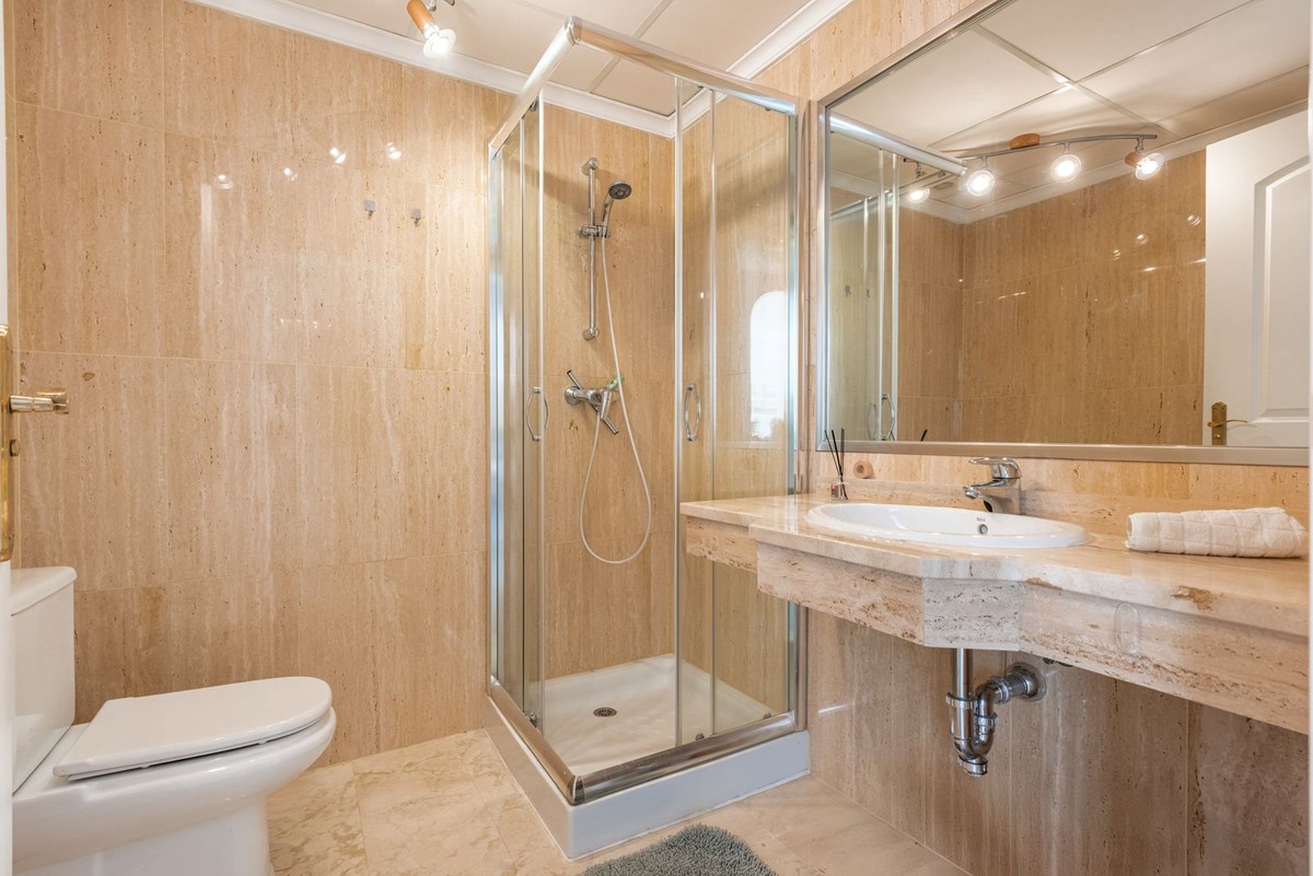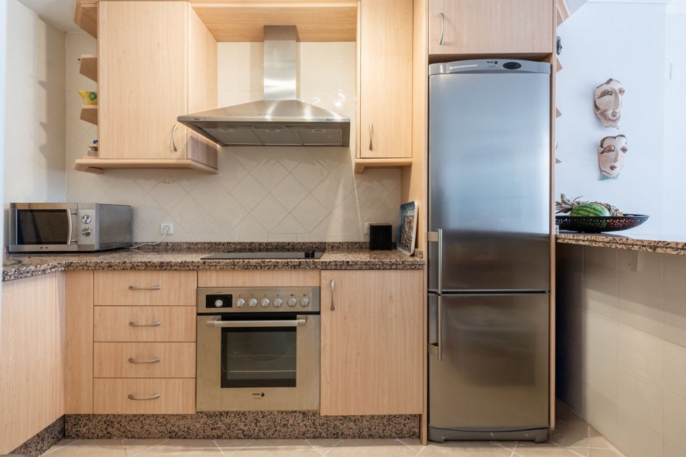 - Bright and Elegant Apartment with Lush garden views in Elviria. This beautifully presented apartment is located within a well-maintained, gated community with 24-hour security in the highly sought-after area of Elviria. Combining comfort, style, and convenience, it is perfect for year-round living, a holiday home, or a secure investment opportunity. The apartment features a spacious and inviting living and dining area with large sliding doors that open onto a generous terrace offering open, green views. The modern open-plan kitchen is fully equipped and includes a breakfast bar and elegant countertops – ideal for social dinners and relaxing evenings at home. The property offers two comfortable bedrooms and two bathrooms, one of which is en suite with a bathtub and the other with a shower. Bright marble floors run throughout the apartment, and the bathrooms are stylishly finished. Additional features include air conditioning, a private parking space in the underground garage, and a storage room for added convenience. The well-kept community boasts beautifully landscaped tropical gardens, four large swimming pools, and four separate children’s pools, as well as 24-hour security and secure gated access. The location is excellent – just five minutes from local shops, supermarkets, banks, a bakery, and restaurants, as well as Santa María Golf and Elviria’s beautiful sandy beaches. Marbella town centre is only 15 minutes away, and Málaga Airport can be reached in about 30 minutes.
