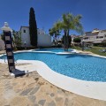 - Ground floor flat for sale in the area of Nagüeles, just a few minutes drive from Puerto Banús and Marbella, in a charming Andalusian village style urbanization, ideal for families as it is close to leading schools such as the Swans International School and the British International School of Marbella, and 2mn drive to the beach of the Golden Mile. The flat has a built area of 135 m2 with a very spacious terrace of 90m2. The property is distributed in an entrance hall, a fully fitted kitchen with utility room, a living-dining room with fireplace, 2 bedrooms with the possibility to make a third bedroom as initially the property was 3 bedrooms, 2 complete bathrooms, one of them ensuite, and a dressing room. It has air conditioning hot and cold, and it is south-east facing. The urbanisation offers many gardens, communal swimming pool and children's playground. It is sold with garage space, no storage room. It has First Occupation Licence.