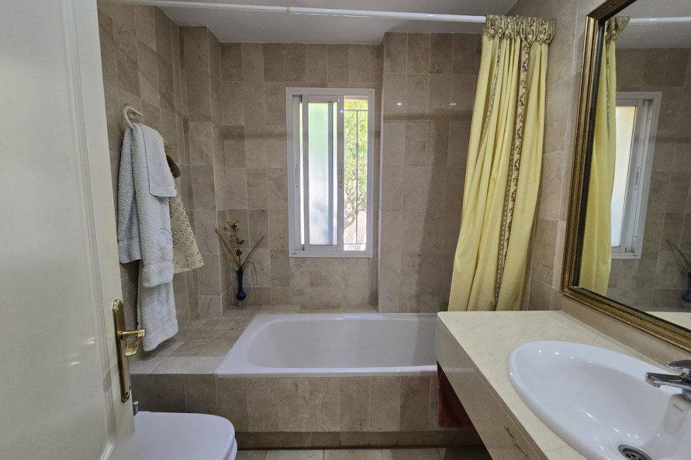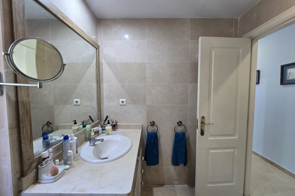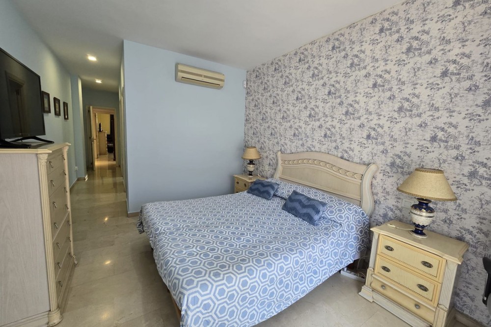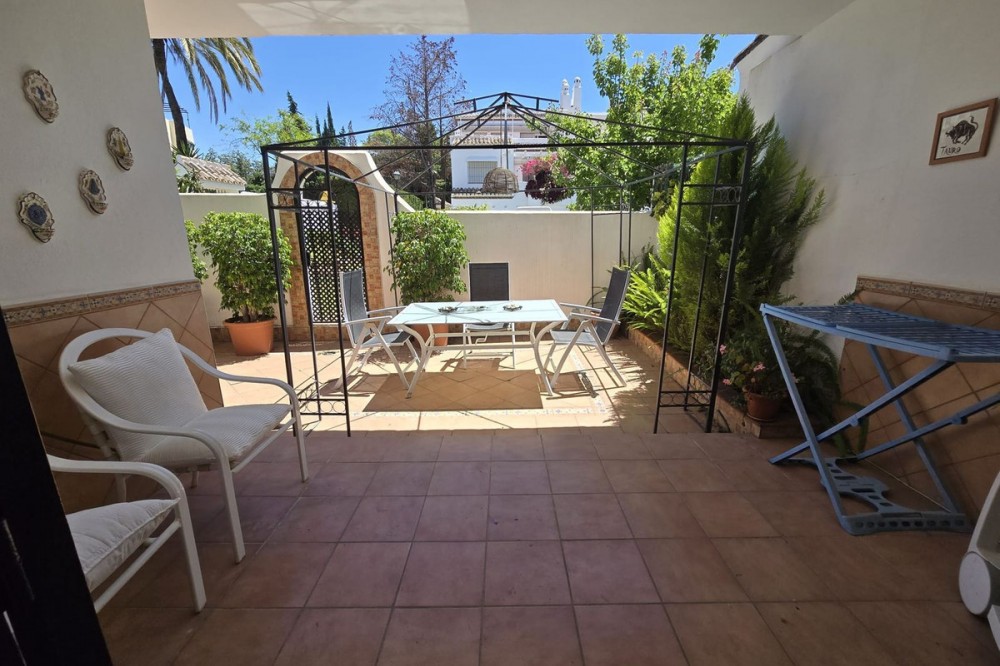 - Ground floor flat for sale in the area of Nagüeles, just a few minutes drive from Puerto Banús and Marbella, in a charming Andalusian village style urbanization, ideal for families as it is close to leading schools such as the Swans International School and the British International School of Marbella, and 2mn drive to the beach of the Golden Mile. The flat has a built area of 135 m2 with a very spacious terrace of 90m2. The property is distributed in an entrance hall, a fully fitted kitchen with utility room, a living-dining room with fireplace, 2 bedrooms with the possibility to make a third bedroom as initially the property was 3 bedrooms, 2 complete bathrooms, one of them ensuite, and a dressing room. It has air conditioning hot and cold, and it is south-east facing. The urbanisation offers many gardens, communal swimming pool and children's playground. It is sold with garage space, no storage room. It has First Occupation Licence.