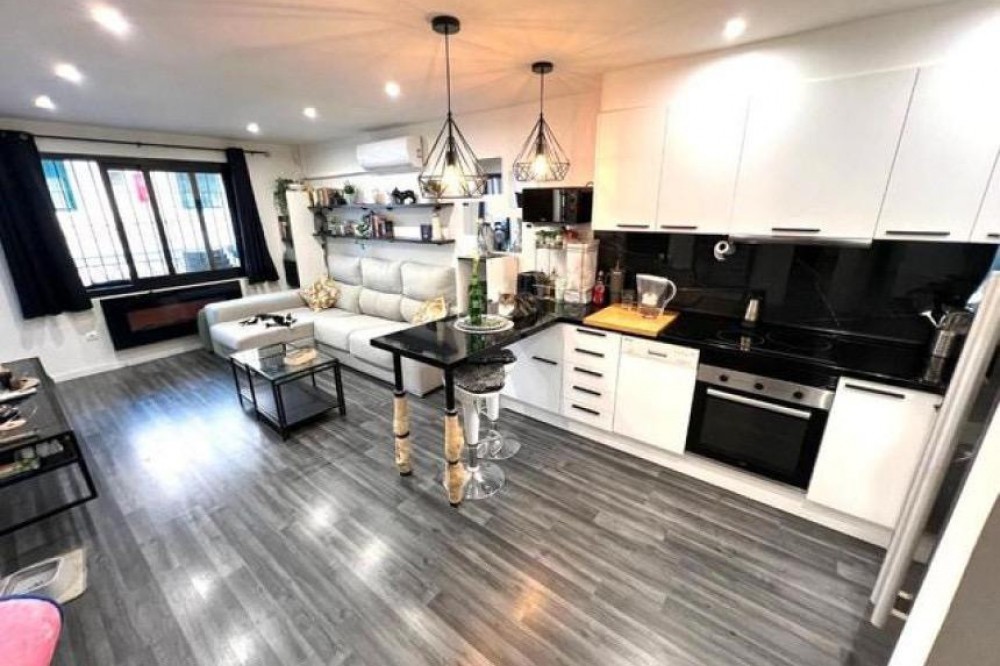 - Excellent renovated apartment in Torrequebrada, in a very quiet area with an excellent neighborhood. This cozy apartment has two bedrooms and a full bathroom. There is the possibility of creating another bathroom on the terrace. The living-dining room is integrated with a modern open-plan kitchen, fully renovated with high-quality materials. The master bedroom has direct access to a large 25-square-meter terrace, ideal for enjoying the sun and fresh air. It is a ground floor apartment from one side of the building and a second floor apartment from the other. The southwest orientation of the apartment is a great plus: it allows for abundant natural light and warm sunsets, ensuring a bright and pleasant atmosphere for much of the day. The apartment has air conditioning and an alarm system for your comfort and security. Included in the price is a 19-square-meter closed garage, which can also be used as a storage room for added convenience. The development offers well-maintained common areas, with a garden and pool, perfect for relaxation and socializing. The community fee is very affordable, only 78 euros per month. As for the location, you have the Mercadona supermarket just a 5-minute walk away, the beach a 7-minute walk, and it's also close to a golf course, ideal for sports and nature lovers. All of this on a very well-connected street with all services within reach. Come visit and fall in love! We inform you that our agency fees are already included in the sale price, so you do not have to pay any fees for management or real estate advice. In compliance with Andalusian Regional Government Decree 218/2005 of October 11, we inform you that notary, registry, property transfer (ITP), and other expenses inherent to the sale are not included in the price. The information provided is indicative, is not binding, and has no contractual value. This information may have been modified but has not yet been incorporated. We suggest you contact the company to obtain the latest information and/or confirm the information provided here.