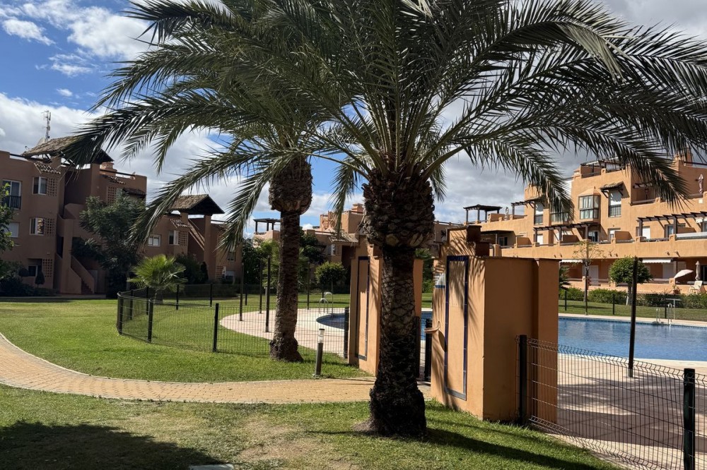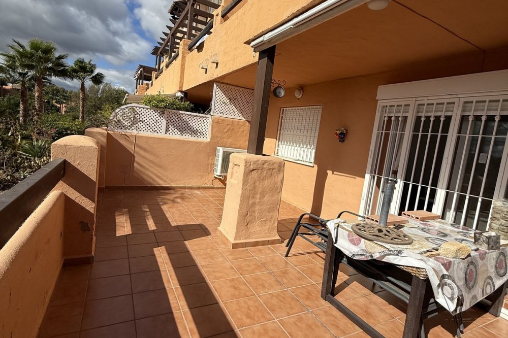 - Discover this charming ground floor apartment in the beloved residence Casares del Sol, a closed complex with beautiful gardens and multiple swimming pools just minutes from the sea and golf. Close to the prestigious Finca Cortesín Golf & Resort, one of the most exclusive golf courses in Spain. The apartment is excellently maintained and combines comfort, peace and location – ideal for those who want to live or invest on the sunny Costa del Sol. The property features a bright living room with sliding windows to the terrace and private garden, a fully equipped kitchen with separate laundry room, two bedrooms and two bathrooms, one of which is en-suite. The southwest orientation provides plenty of sun and natural light, while the communal gardens and swimming pools provide a pleasant, holiday-like atmosphere. The price includes an underground parking space and a spacious storage room, also the furniture. The residence is well maintained, fully fenced and equipped with secure access. Ground Floor Apartment, Casares Playa, Costa del Sol. 2 Bedrooms, 2 Bathrooms, Built 90 m², Terrace 22 m², large garage and storage Setting : Close To Golf, Close To Sea, Urbanisation. Orientation : South West. Condition : Good. Pool : Communal. Climate Control : Air Conditioning, Hot A/C. Views : Sea, Panoramic, Garden. Features : Covered Terrace, Lift, Fitted Wardrobes, Near Transport, Private Terrace, WiFi, Storage Room, Ensuite Bathroom, Double Glazing. Furniture : Fully Furnished. Kitchen : Fully Fitted. Garden : Communal, Landscaped. Security : Gated Complex, Electric Blinds. Parking : Underground. Utilities : Electricity, Drinkable Water. Category : Beachfront, Cheap, Investment.