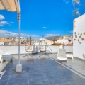- Welcome to this fantastic penthouse on the charming pedestrian street Calle Marbella, in the heart of Fuengirola! The apartment offers two bedrooms and two bathrooms. The master bedroom is spacious and bright and has its own bathroom en-suite. The modern kitchen is integrated with the living room. The dining area in the living room is currently also used as an extra sleeping area. Outside the living room there is a terrace and up a flight of stairs we come to the fantastic roof terrace which has all the amenities you can imagine. Outdoor shower and outdoor kitchen with fridge and washing machine and plenty of space for a dining area, sun loungers and flowers. Up here we also find a storage room where cushions and outdoor furniture can be stored. From the roof terrace we have a beautiful view towards the mountains and over the roof ridges of Fuengirola. The property has been recently repainted and has an elevator. A rental license is available through the rental company that currently provides periodic rentals.