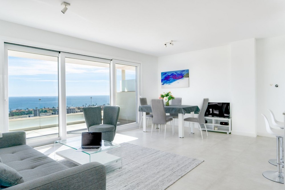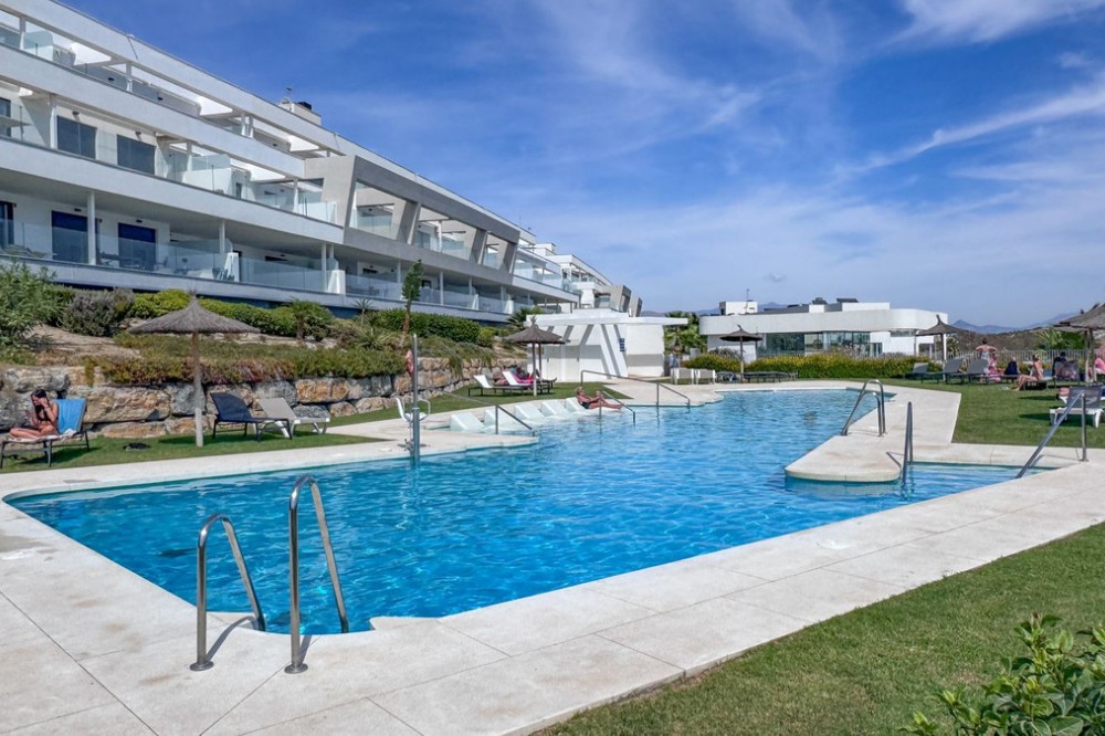 - CASARES GOLF READY-TO-MOVE PENTHOUSE WITH SEA VIEWS DIRECTLY ON THE GOLF COURSE This well-maintained penthouse offers a bright, open living space with an integrated kitchen and a spacious terrace boasting unobstructed panoramic sea views. The penthouse is located in a modern residential complex with a communal pool and gym. Two well-proportioned bedrooms, one with en-suite bathroom, provide comfortable living. The golf club and the beach are within walking distance, while shops and restaurants are just a short drive away. Estepona can be reached in a few minutes by car, and Málaga airport is less than an hour away. An ideal property for those seeking peace and quiet without giving up good accessibility. •Price includes 2 garage spaces and 1 storage room. •Large terrace with open sea and golf views •Excellent condition in a well-maintained complex •Easy access to Estepona and Málaga Airport •Suitable for those who value a calm setting near the coast.