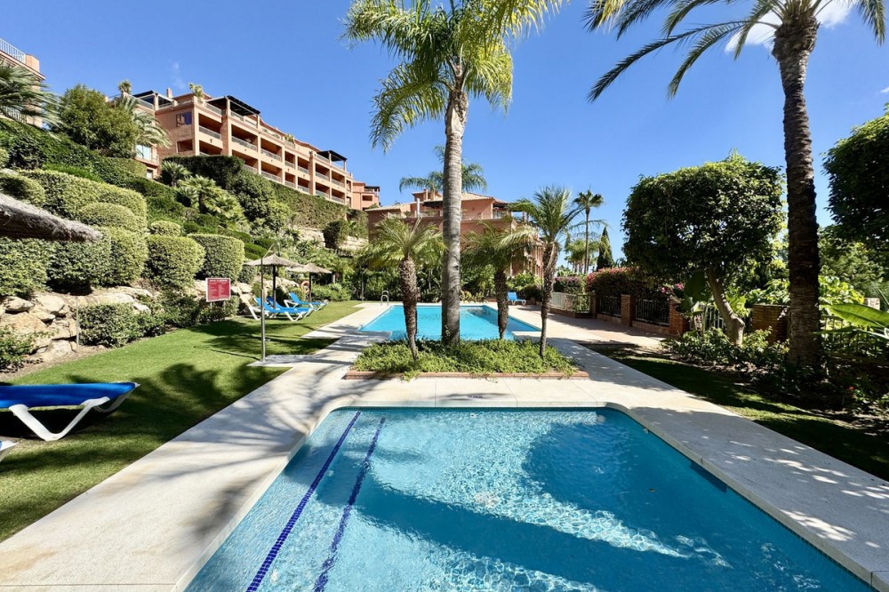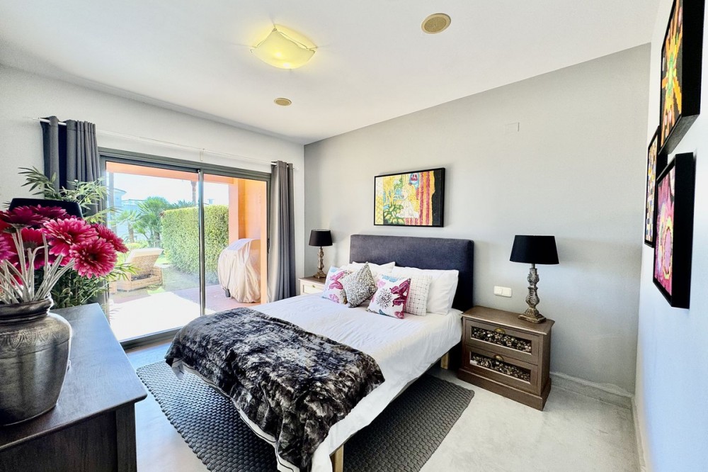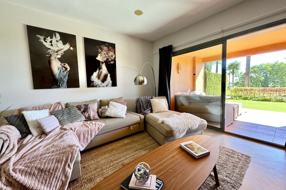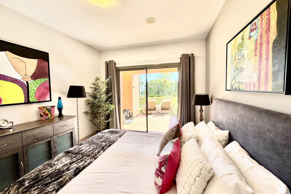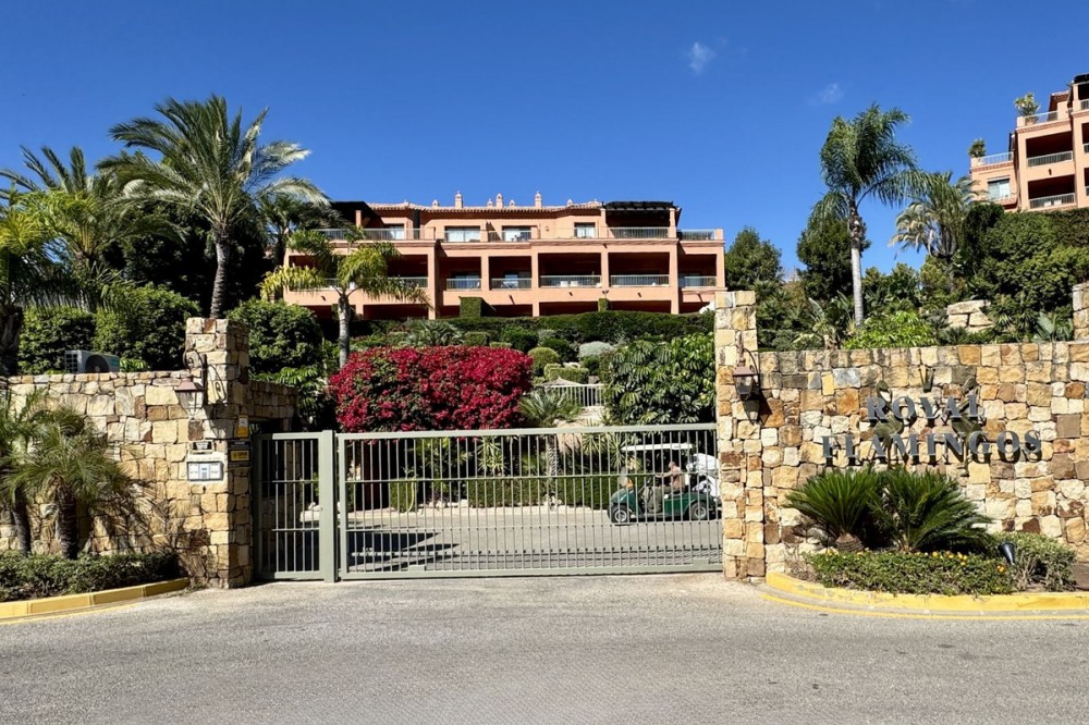 - 2-Bedroom Apartment with Sea Views in Royal Flamingos, Los Flamingos Golf Resort This beautiful ground-floor apartment boasts fabulous views of the sea and golf courses. Located in the exclusive Royal Flamingos community, next to the 5-star Villa Padierna Hotel, it features a master bedroom with an en-suite bathroom, a second bedroom with a separate bathroom, and a fully equipped kitchen with a utility room. One of the apartment’s standout features is its private garden, offering both tranquility and seclusion. This lush outdoor space provides a perfect setting to relax, dine, or entertain while enjoying complete privacy and the natural beauty of the surroundings. The property includes gas central heating, underfloor heating in the bathrooms, hot and cold A/C, an underground parking space, and a storage room. The gated complex offers 24-hour security, immaculate gardens, 3 swimming pools, and a paddle tennis court. Los Flamingos Villa Padierna Golf Resort is just 15 minutes from Marbella, 10 minutes from Estepona, and only 5 minutes from the beach.