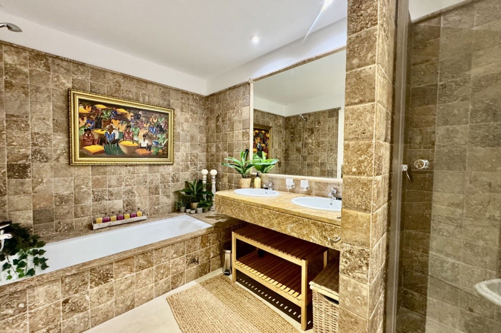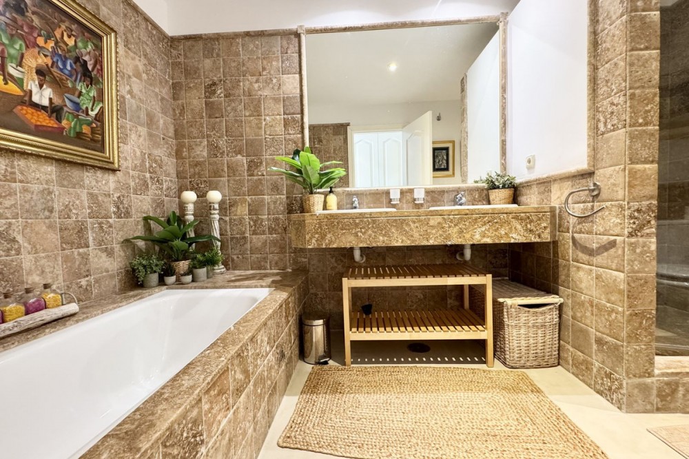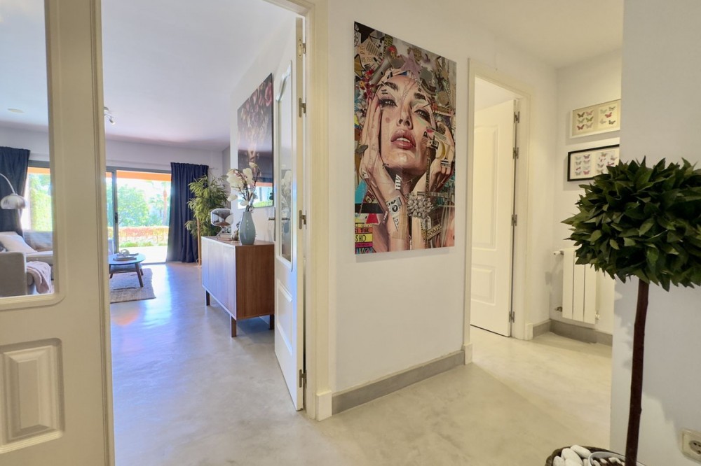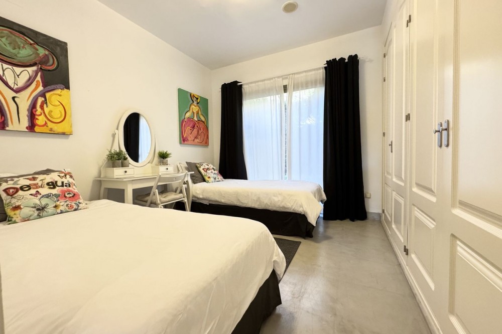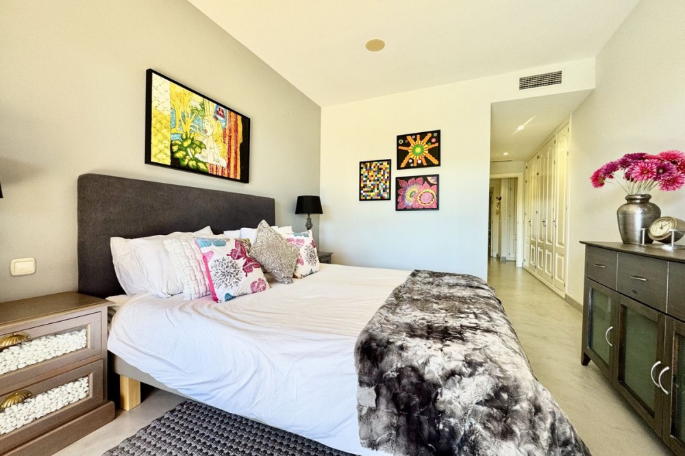 - 2-Bedroom Apartment with Sea Views in Royal Flamingos, Los Flamingos Golf Resort This beautiful ground-floor apartment boasts fabulous views of the sea and golf courses. Located in the exclusive Royal Flamingos community, next to the 5-star Villa Padierna Hotel, it features a master bedroom with an en-suite bathroom, a second bedroom with a separate bathroom, and a fully equipped kitchen with a utility room. One of the apartment’s standout features is its private garden, offering both tranquility and seclusion. This lush outdoor space provides a perfect setting to relax, dine, or entertain while enjoying complete privacy and the natural beauty of the surroundings. The property includes gas central heating, underfloor heating in the bathrooms, hot and cold A/C, an underground parking space, and a storage room. The gated complex offers 24-hour security, immaculate gardens, 3 swimming pools, and a paddle tennis court. Los Flamingos Villa Padierna Golf Resort is just 15 minutes from Marbella, 10 minutes from Estepona, and only 5 minutes from the beach.