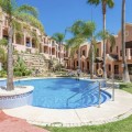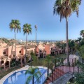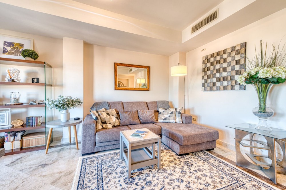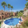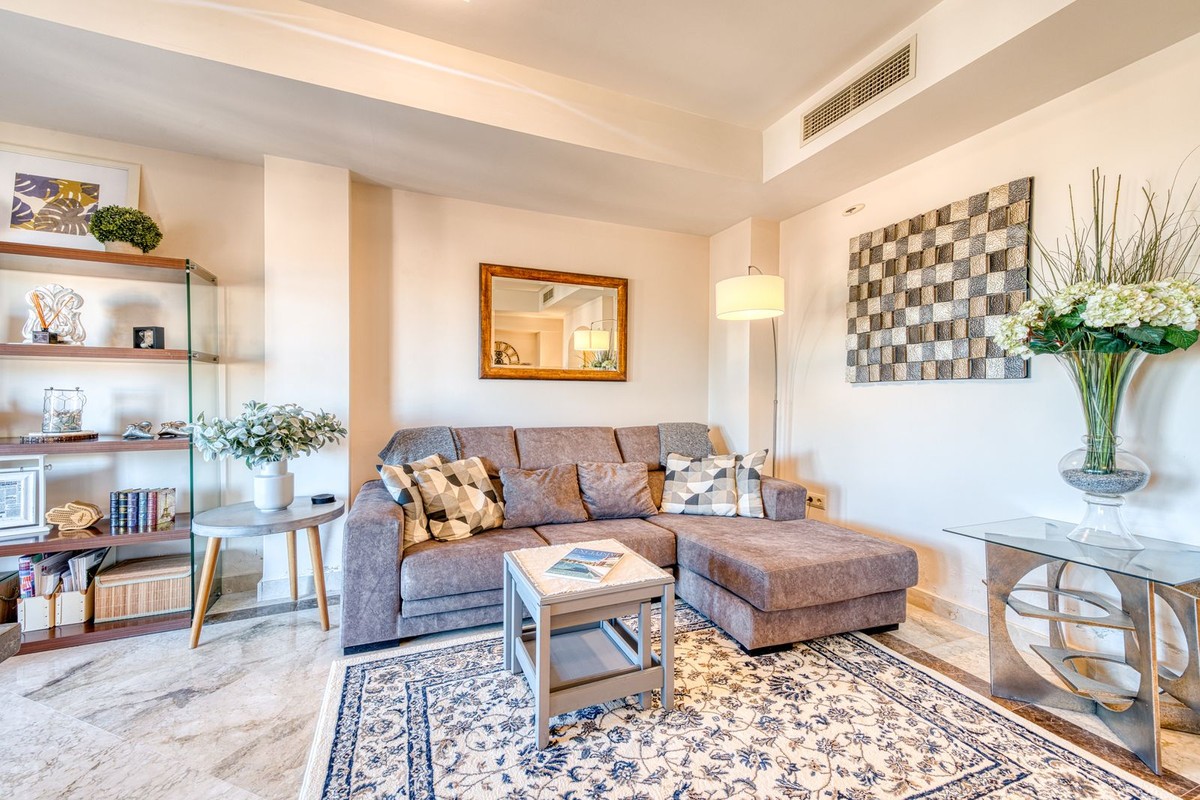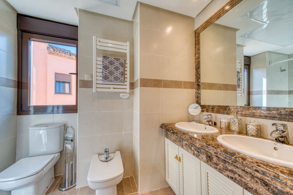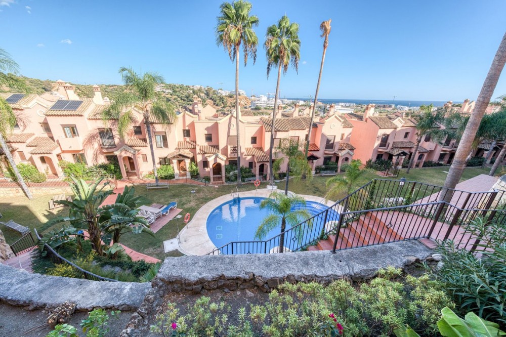 - Elegant Three-Bedroom Townhouse in a Prestigious Gated Community | Estepona This beautifully presented three-bedroom townhouse is located within one of Estepona’s most exclusive gated communities, offering a perfect balance of style, comfort, and convenience. Impeccably maintained and sold fully furnished, this key-ready home combines refined interiors with exceptional functionality. A striking double-height entrance hall sets the tone for the sense of space throughout. The contemporary kitchen is fitted with premium appliances and opens to a versatile glass-enclosed room, ideal for dining or relaxation. The open-plan living and dining area flows seamlessly onto a covered terrace enclosed with glass curtains, creating an inviting year-round setting with tranquil garden and sea views. Upstairs are three generous bedrooms and two elegant bathrooms. The principal suite enjoys a private terrace overlooking the sea and golf course, while the guest bedrooms share a beautifully appointed bathroom. On the lower level, a private double garage with ample storage provides security and practicality. The home features independently controlled air-conditioning and a modern heat-pump system on each floor for energy-efficient comfort. Ideally positioned close to Estepona’s newest amenities—including the modern Estepona Hospital, schools, golf courses, and the renowned Alcazaba Lagoon, this residence offers effortless access to both leisure and lifestyle. Local shops and supermarkets are a short walk away, with beaches less than 20 minutes on foot. A superb turnkey opportunity in one of Estepona’s most desirable enclaves—ideal as a permanent residence, elegant holiday retreat, or sound investment on the Costa del Sol.