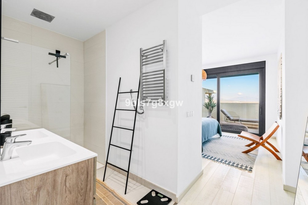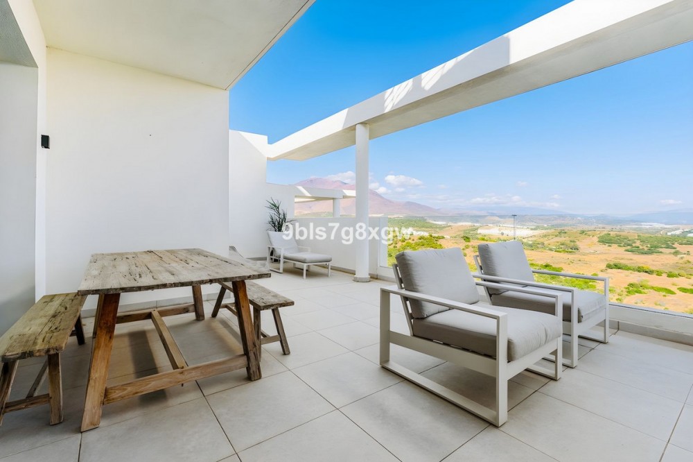 - Discover this unique 2-bedroom apartment in the exclusive, gated and 24/7 secured Finca Cortesin resort, one of the most luxurious and tranquil destinations on the Costa del Sol. Surrounded by nature and centred around a 5-star hotel, a world-class golf course, spa & sports facilities, and a stunning beach club, this is a truly exceptional setting. Step into a bright, open-plan living area with parquet flooring, tastefully decorated and opening onto a spacious terrace with breathtaking panoramic views of the Sea, mountains and countryside. The finishes throughout the apartment are of high quality, enhancing every corner with elegance and attention to detail. The modern open kitchen with Siemens appliances and a breakfast bar is perfect for hosting, and connects to a utility room. Both bedrooms are spacious with fitted wardrobes, en-suite bathrooms and benefit from an airzone climate control system as well as electric blinds. A guest toilet is located in the hallway. The two terraces, located on opposite sides of the apartment, flood the home with natural light throughout the day and offer the flexibility to enjoy either sun or shade at any time. The main terrace, with its crystal balustrades, maximises the stunning views, while the second sunlit terrace is ideal for late afternoon relaxation. The property also includes a private parking space, a storage room, and elevator access. This small gated community (only 44 units) offers beautifully landscaped tropical gardens and an impressive overflowing infinity pool. Ideally located just minutes from the beach, 12 minutes from Estepona and 17 minutes from Sotogrande, this apartment is the perfect choice for those seeking a refined, relaxed lifestyle with top-class amenities close by. Whether you're into golf, the sea, or simply looking for a peaceful retreat, this exclusive home has it all!
