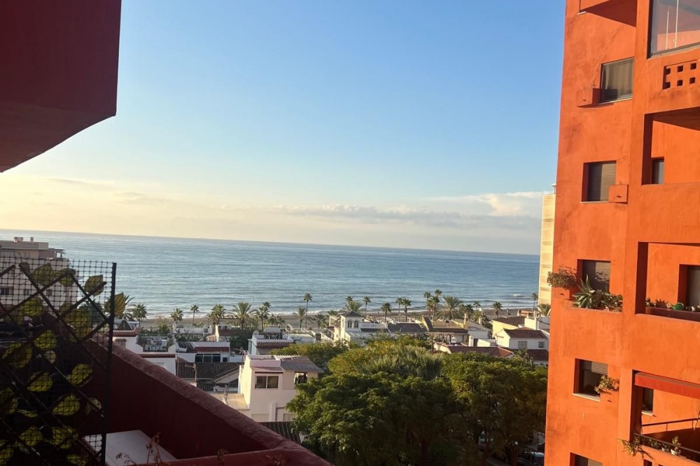 • Discover this stunning, freshly renovated apartment in the exclusive Balcones del Mar urbanisation in Estepona, on the vibrant Costa del Sol. Nestled just a stone's throw from the golden sands of the beach, the iconic Mirador del Carmen socio-cultural centre with its breathtaking panoramic views, and the lively seafront promenade, this property offers the perfect blend of tranquillity and convenience. Enjoy easy access to the bustling Puerto Deportivo de Estepona, renowned for its restaurants, leisure spots, and fishing harbour, all within a short stroll—ideal for those seeking a coastal lifestyle. This bright, outward-facing fifth-floor gem boasts uninterrupted vistas of the sparkling Mediterranean Sea and majestic mountains, thanks to its desirable south-west orientation. Spanning 109 m² of built space, the apartment features a spacious bedroom with a generous built-in wardrobe, a luxurious marble bathroom with shower, and a fully equipped open-plan kitchen complete with brand-new furniture and appliances. The expansive living-dining area seamlessly flows onto a private terrace, perfect for al fresco dining or simply soaking up the sun. Included in the price is a convenient parking space with easy access and a large storage room. Residents benefit from a secure gated community, lush green spaces, a children's playground, and two refreshing swimming pools—one for adults and one for little ones. Built in 2007 and meticulously renovated in 2025, the property includes air conditioning, an elevator for effortless access, and communal gardens. Experience the charm of Estepona, known as the 'Garden of the Costa del Sol', with its 3 km promenade offering views as far as Gibraltar, vibrant marina, and proximity to Playa del Cristo. This is more than a home—it's your gateway to endless sunshine and seaside serenity.